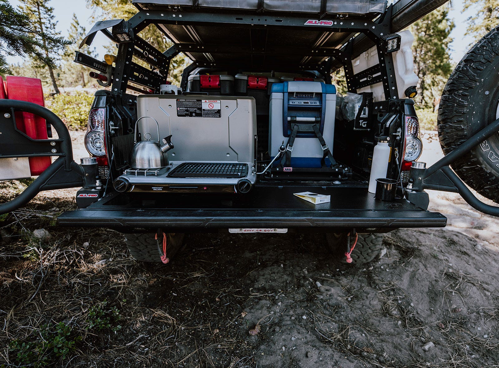 Using your tailgate as a table is nothing new to you. Your tailgate is your go-to workbench, picnic table, cutting board, and stool. The only ones who don't seem to understand this are Toyota themselves as evidenced by the wavy impractical design of their tailgate panel. The stock tailgate panel is a wasted opportunity that you can easily correct with the All-Pro Off-Road Overland Tailgate Table.