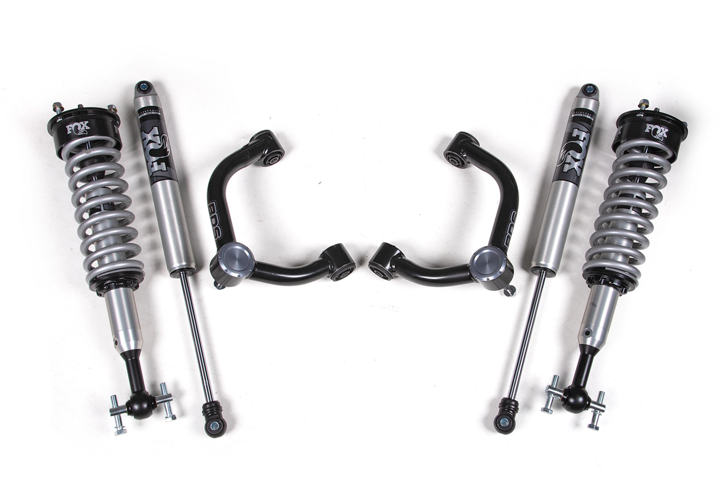Up front the lift kit includes FOX 2.0 Performance Series coil-over shocks and heavy duty tubular upper control arms for increased strength. In the rear this kit utilizes a matching set of FOX 2.0 Performance shocks for the smoothest ride.