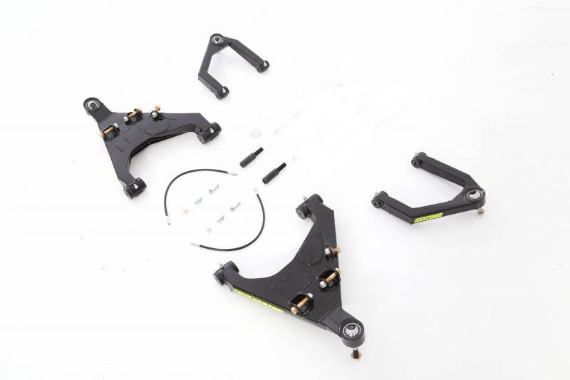 This kit is made to fit perfectly on your Toyota by replacing the stock rubber bushings and ball joints with Trophy Truck quality zero deflection Delrin Bushings and Uniballs, the strength and handling qualities are substantially increased.