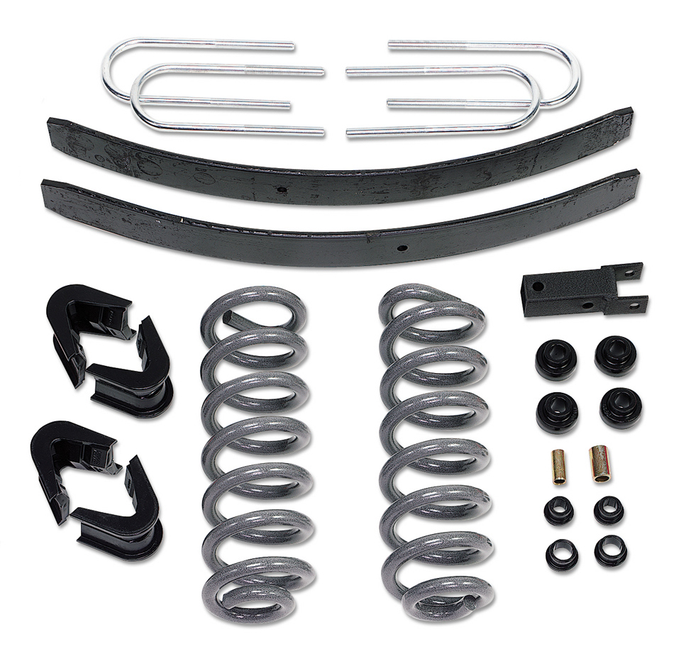 - Includes: 2) Coil Springs (EZ-Ride), 1) Track Bar Relocating Bracket, 1) Front and Rear Brake Line Extension Kit, 1) Drop Pitman Arm (fits 1978-1979 only), 4) Rear U-bolts, 2) Rear Add-a-Leafs, 1) Hardware Bag, 4) C-Bushings (7 degree), 4) Radius Arm Bushings, 4) Track Bar Bushings and Sleeves