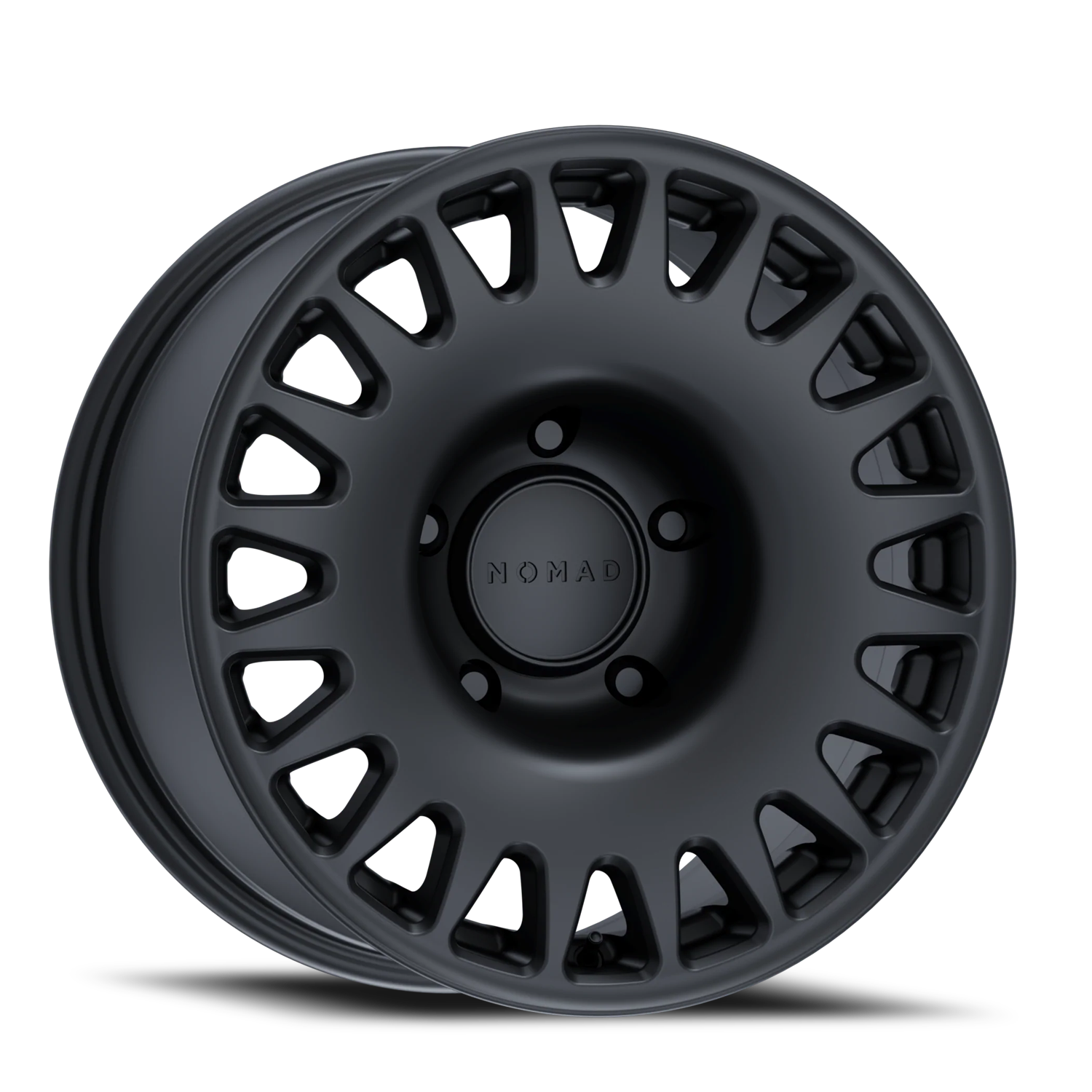 Color Matched Snap-On Cap: Each wheel features a color-matched snap-on cap adorned with a debossed Nomad logo, adding a touch of elegance and brand pride to your vehicle's exterior.