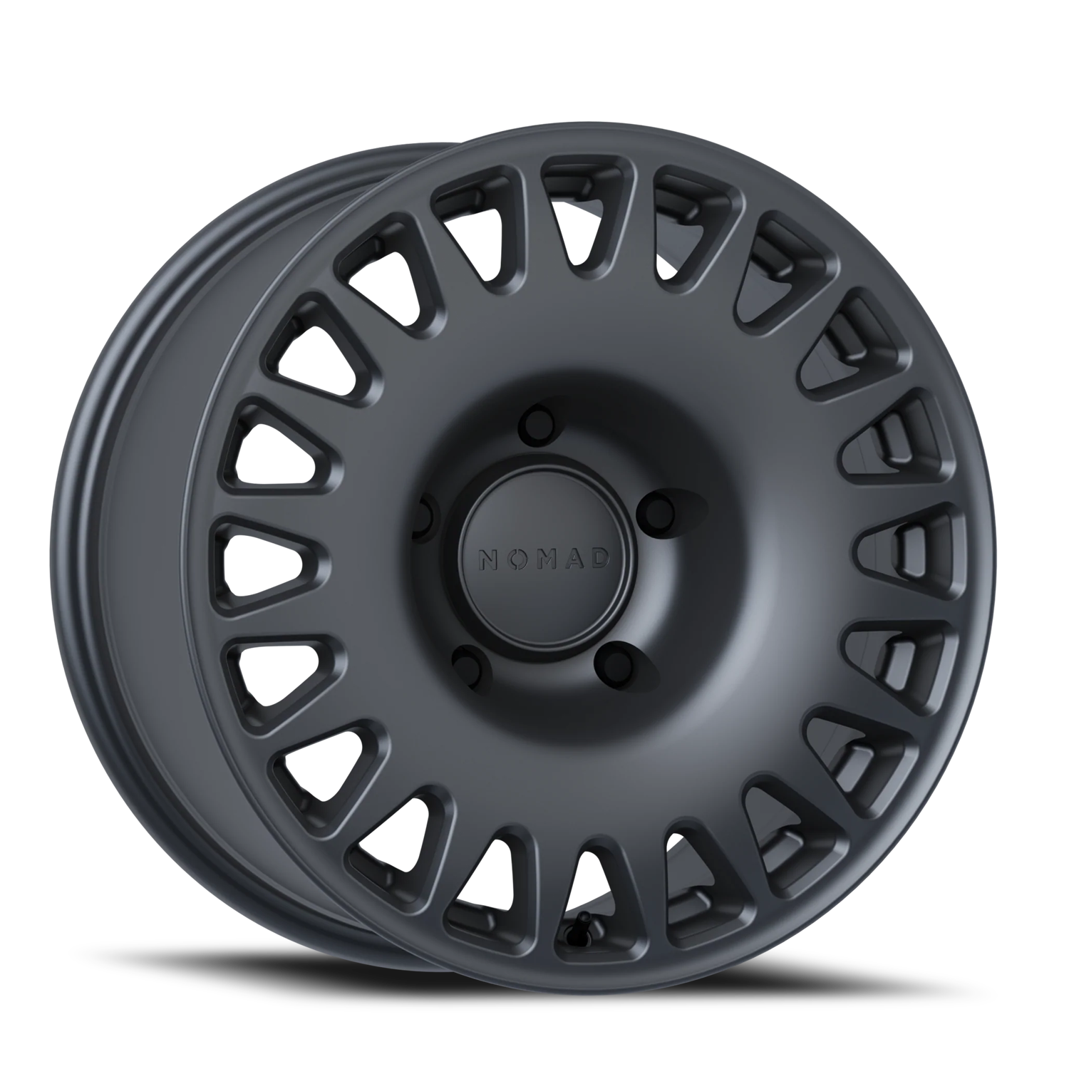 Color Matched Snap-On Cap: Each wheel features a color-matched snap-on cap adorned with a debossed Nomad logo, adding a touch of elegance and brand pride to your vehicle's exterior.