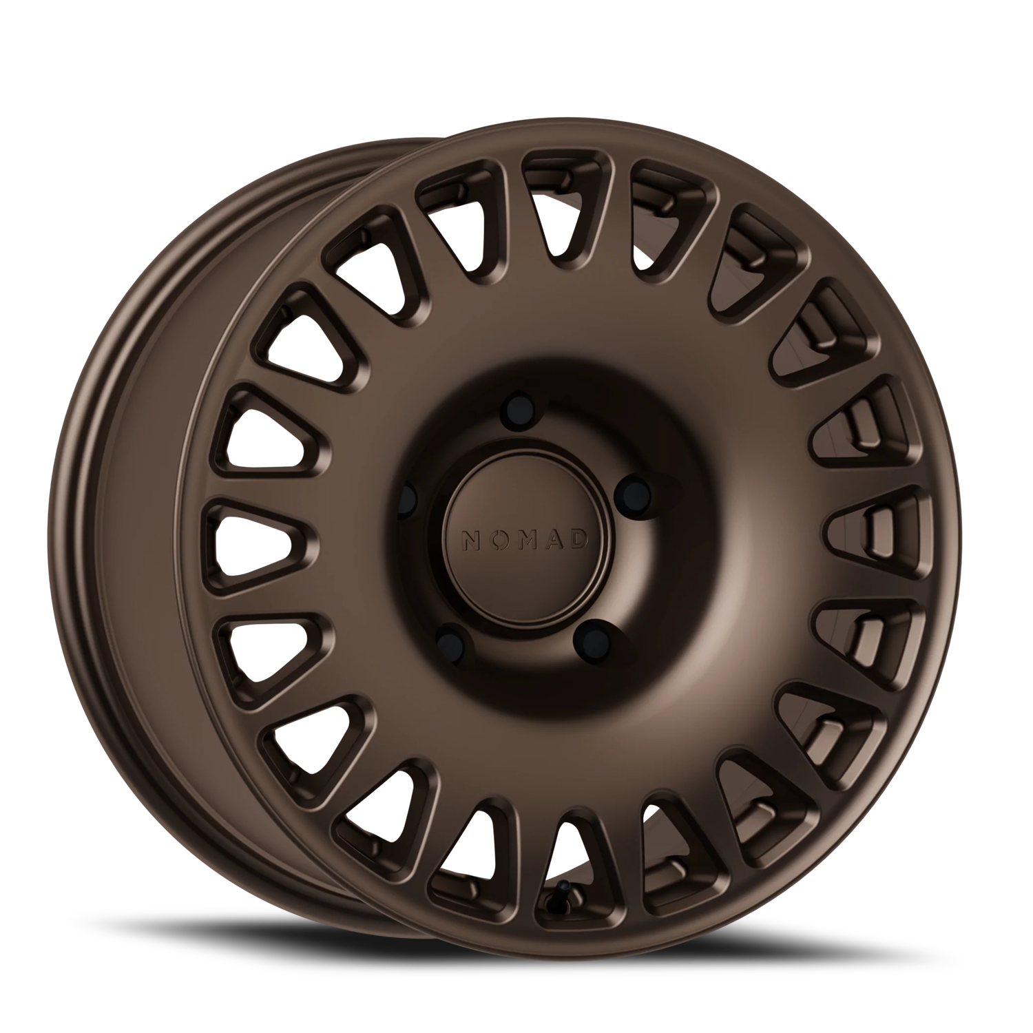 Color Matched Snap-On Cap: Each wheel comes equipped with a color-matched snap-on cap featuring a debossed Nomad logo. This subtle yet impactful detail adds a layer of sophistication to your vehicle's overall look, seamlessly blending performance with aesthetics.