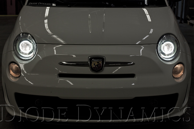 All input wires activate the halos, at different brightness levels. All amber-colored halos ship with low priority drivers. This means that if both low and high power inputs are powered, the LED will light up with low power level. This is convenient for connecting the red wire to a parking light or DRL signal, for use during the day as a high-power DRL. Then, if the white wire is connected to the headlamp power, they will dim down at night. If the yellow wire is powered at any time, the halo will light up at 200 percent brightness momentarily, intended for signalling (dims automatically if powered for more than two seconds).