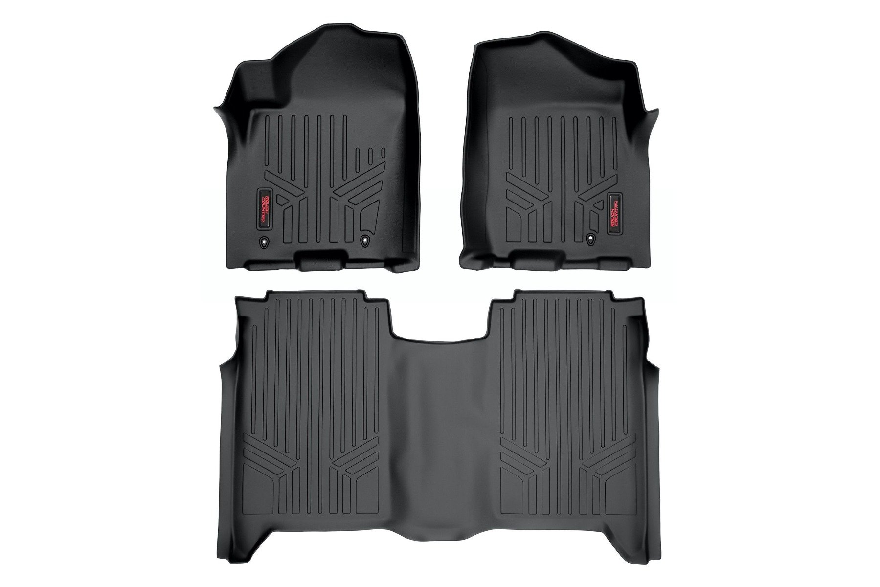 Keep your carpet in pristine condition with Rough Country's Floor Armor: Heavy Duty Floor Mats and Rear Cargo Liners. These eco-friendly, semi-flexible floor mats are made of an ultra-durable Polyethylene that offers a strong, rigid shape that's incredibly easy to clean.