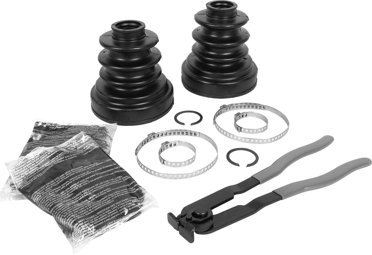 Each kit includes a pair of OEM-style neoprene inner boots, four ear-type CV-Joint clamps, two axle C-clips, and packets of CV joint grease. Available with or without CV-Joint clamp crimp pliers.