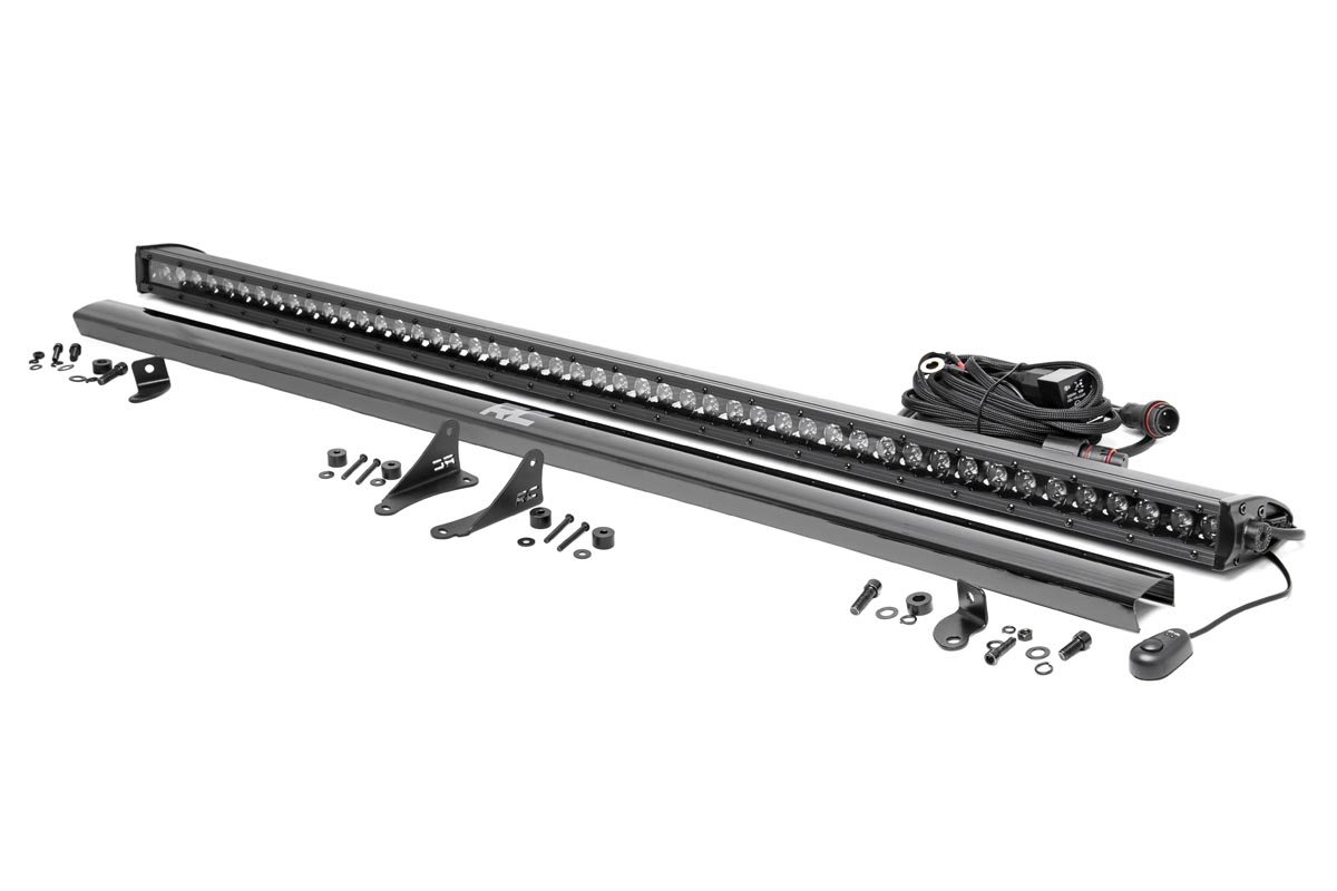 This kit features Rough Country's 50in, straight, single-row LED light bar for a sleek look that leaves plenty of visibility while blending in perfectly with the JL's aggressive front-end design.