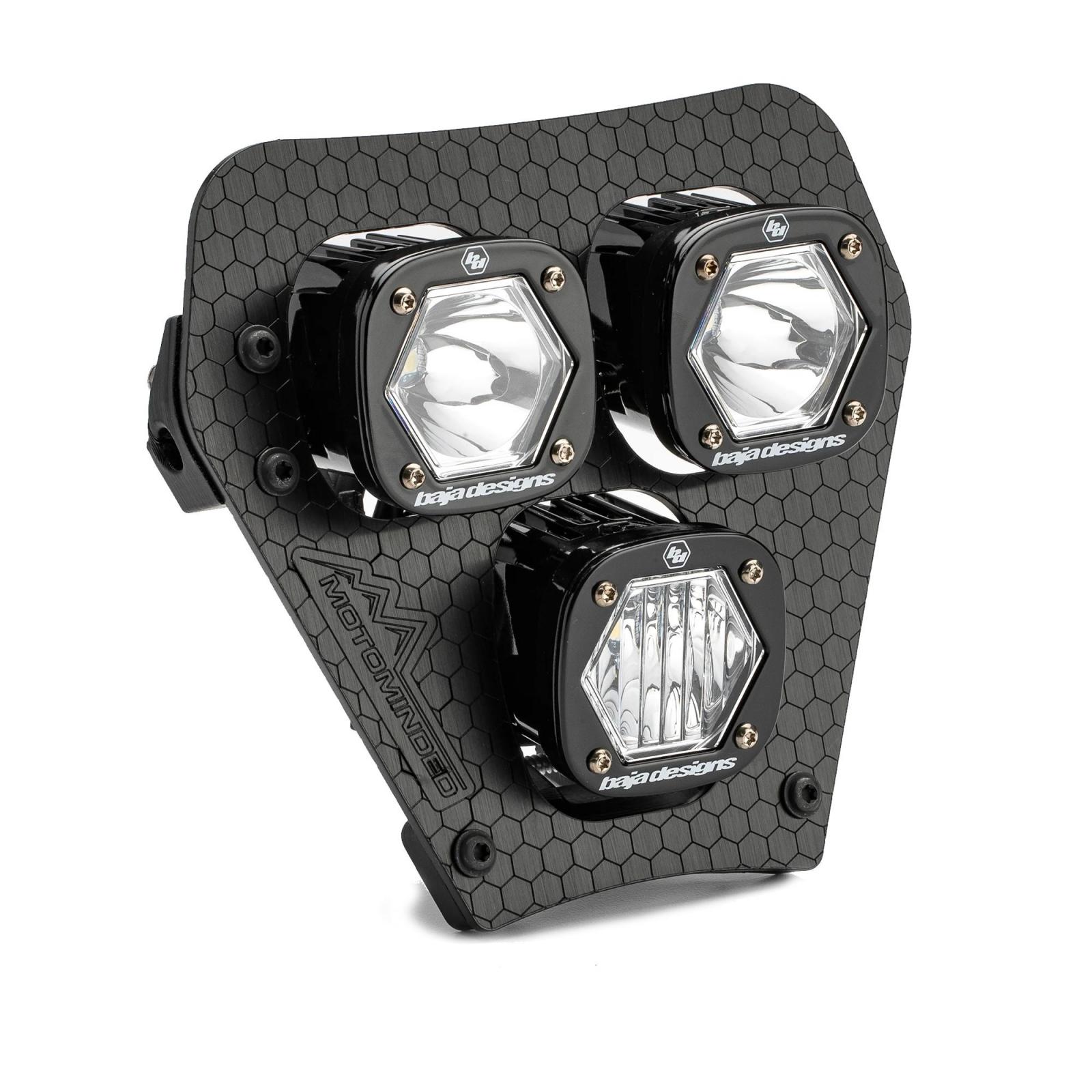 Upgrade to the ultimate off-road lighting with the Baja Designs S1 Hydra Triple LED Headlight Kit for the 2024-2025 KTM off-road motorcycles. This premium LED moto light delivers unparalleled performance for trail riders, dual-sport enthusiasts, and desert racers looking to dominate the trails after dark utilizing three S1 lights for the ultimate lighting package.