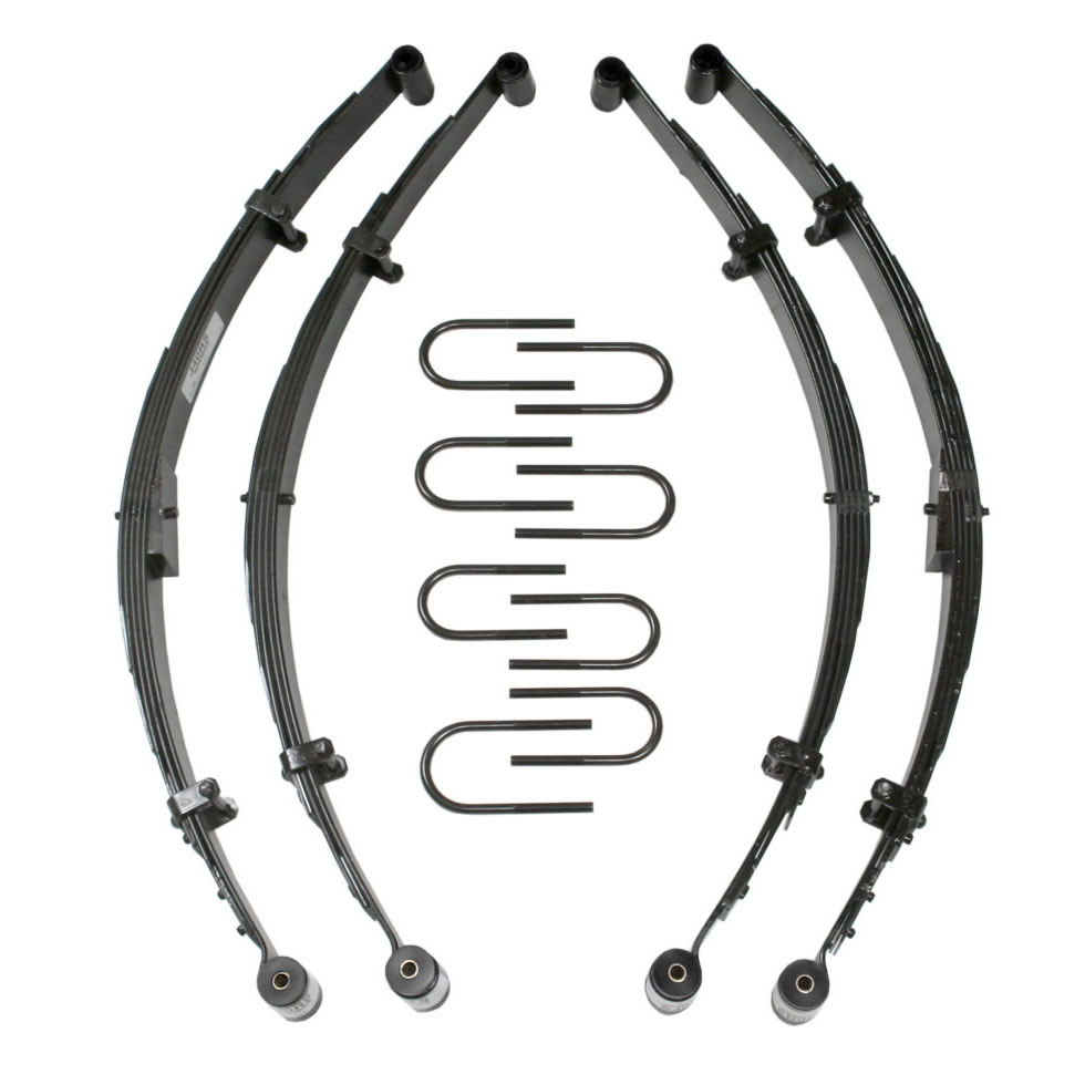 Lift Kit 2-2.5 Inch Lift Includes Front/Rear Leaf Springs Front/Rear Bushing Kits Front/Rear U Bolt Kits 55-58 Jeep Willys 59-60 Jeep CJ5 59-60 Jeep CJ6 66-75 Jeep CJ5 66-75 Jeep CJ6 Skyjacker