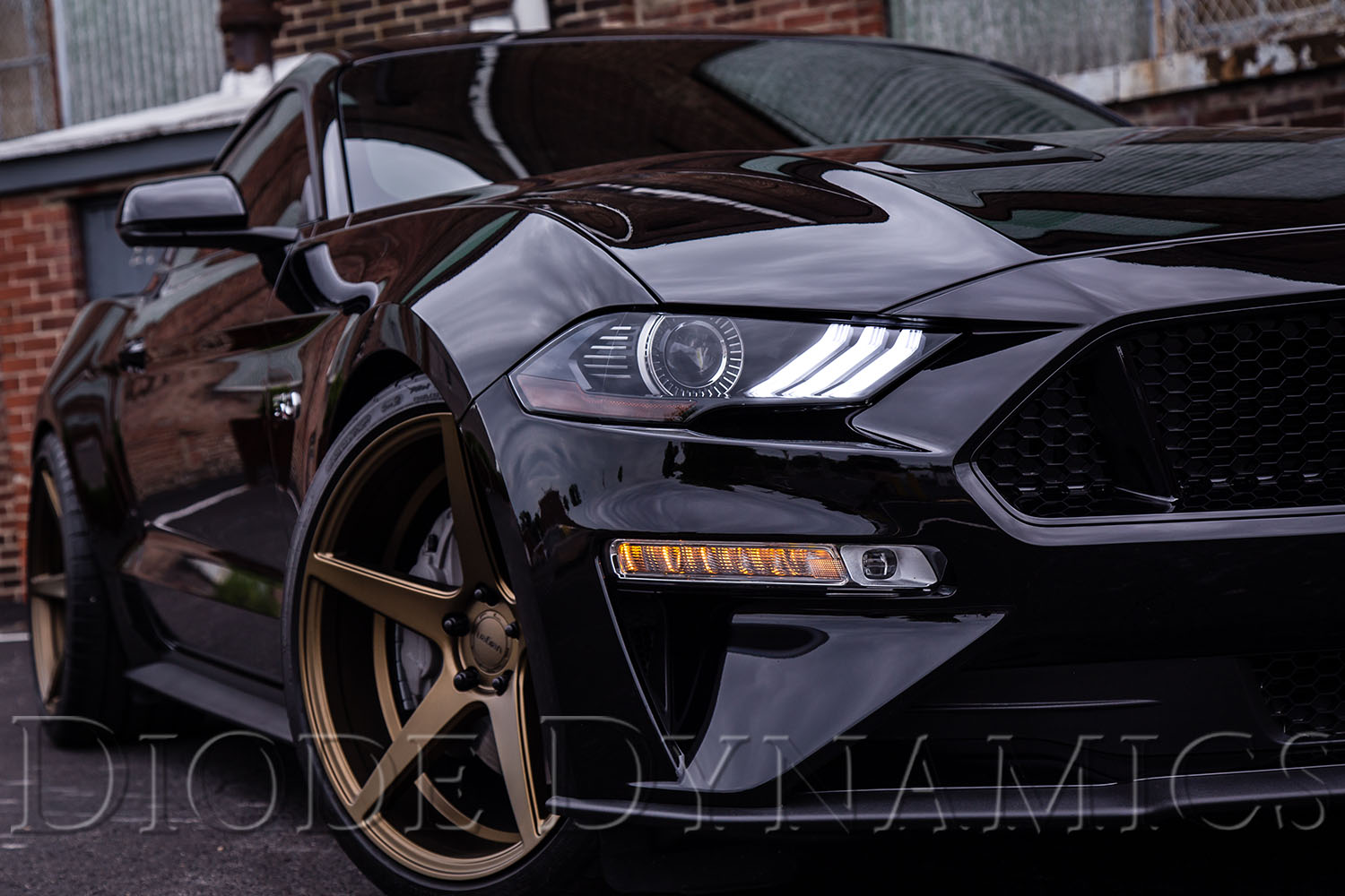 OEM Style, Multicolor Function. The Mustang's factory headlamps are fitted with signature tribar DRLs. By replacing the circuit boards inside with Diode Dynamics LED circuit boards, you can add full multicolor functionality, along with an optional amber sequencing turn signal mode, to seriously make your ride stand out! Your order includes two sets of LED boards, one for each side of the vehicle.