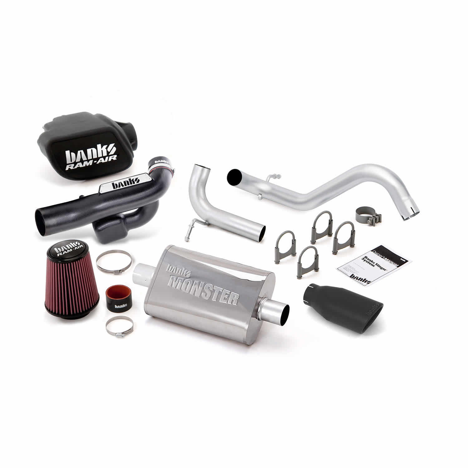 Includes: Ram-Air Cold-Air Intake System, Ram-Air Oiled Filter, Monster Exhaust System, Black Tailpipe, Banks Power Urocal, CARB Decal, Includes all necessary hardware