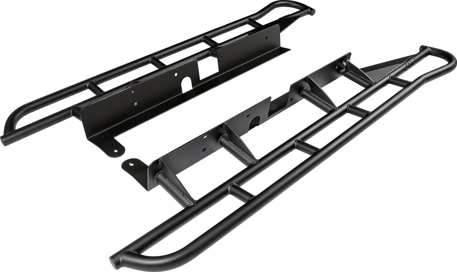 All-Pro Rock Sliders are made from heavy duty 1.75 inch x .120 inch steel tube. Our sliders feature an innovative, one piece mounting plate that runs down the frame allowing for an easier bolt-on installation.