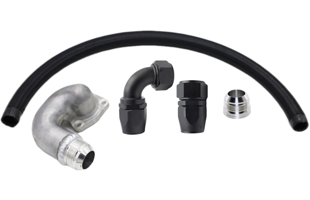 Full Send Diesel's DIY AN braided radiator hose kit it the perfect way to take your build to the next level. Included is everything you need to ditch your upper radiator hose and convert it to all AN threaded connections.