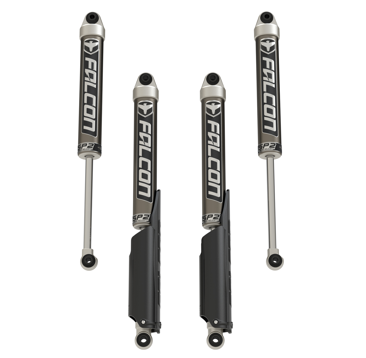 Falcon SP2 2.1 Monotube Shocks deliver increased stability, improved ride quality, and comfort for daily driven Jeeps in a compact and affordable package. SP2 2.1 Shocks have been optimized for on- and off-road driving.