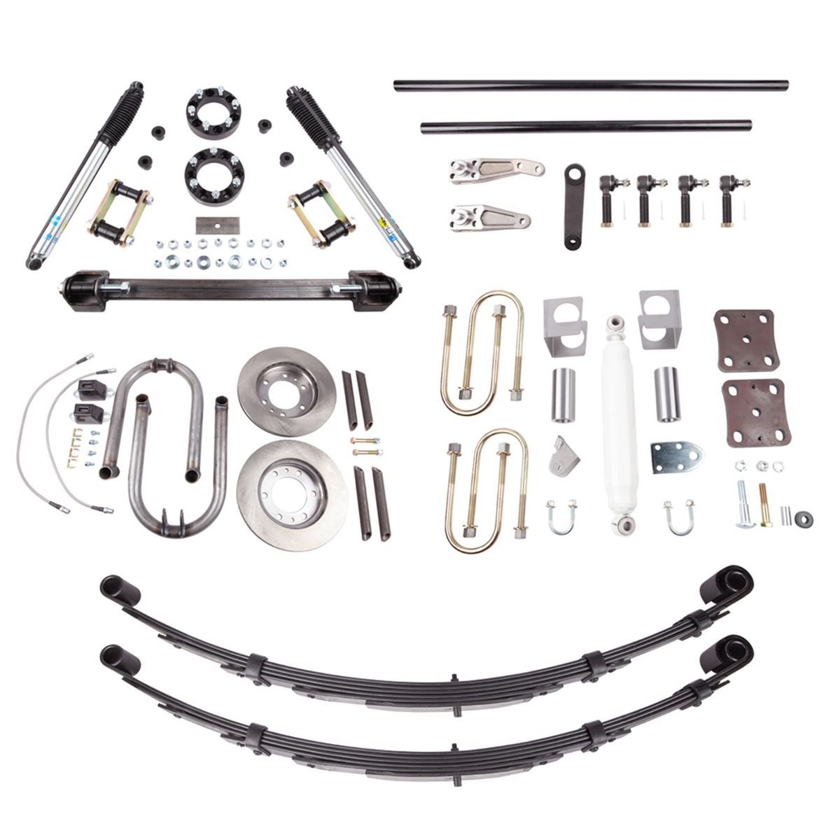 Our kits are comprised of high-quality components. Don?t be fooled by cheap imitations that use inferior look-alikes. We source our parts from reputable suppliers, including Japanese made components such as our exclusive one-piece pitman arm, front rotors, and tie rod ends.