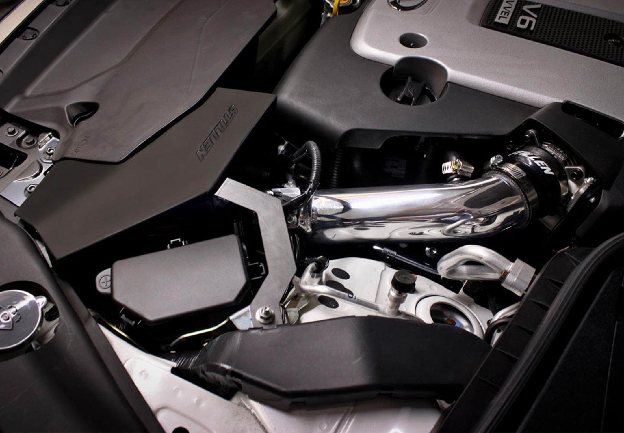 Infiniti Q50 Air Intake - (Gen 2) Dual w/ Polyurethane Heat Shields V37 - Oil Filter - 403230 Increase engine performance with the STILLEN air intake for Infiniti Q50. The GEN 2 features the most optimal horsepower and torque gains. This STILLEN Infiniti Q50 air intake has a Polished finish. This Q50 intake provides a better air flow to the engine with the smooth surface tubing construction.