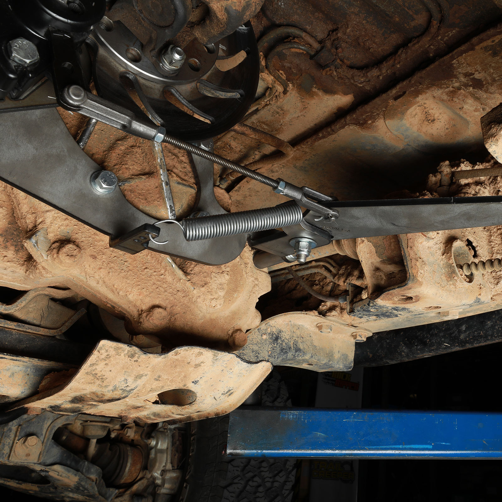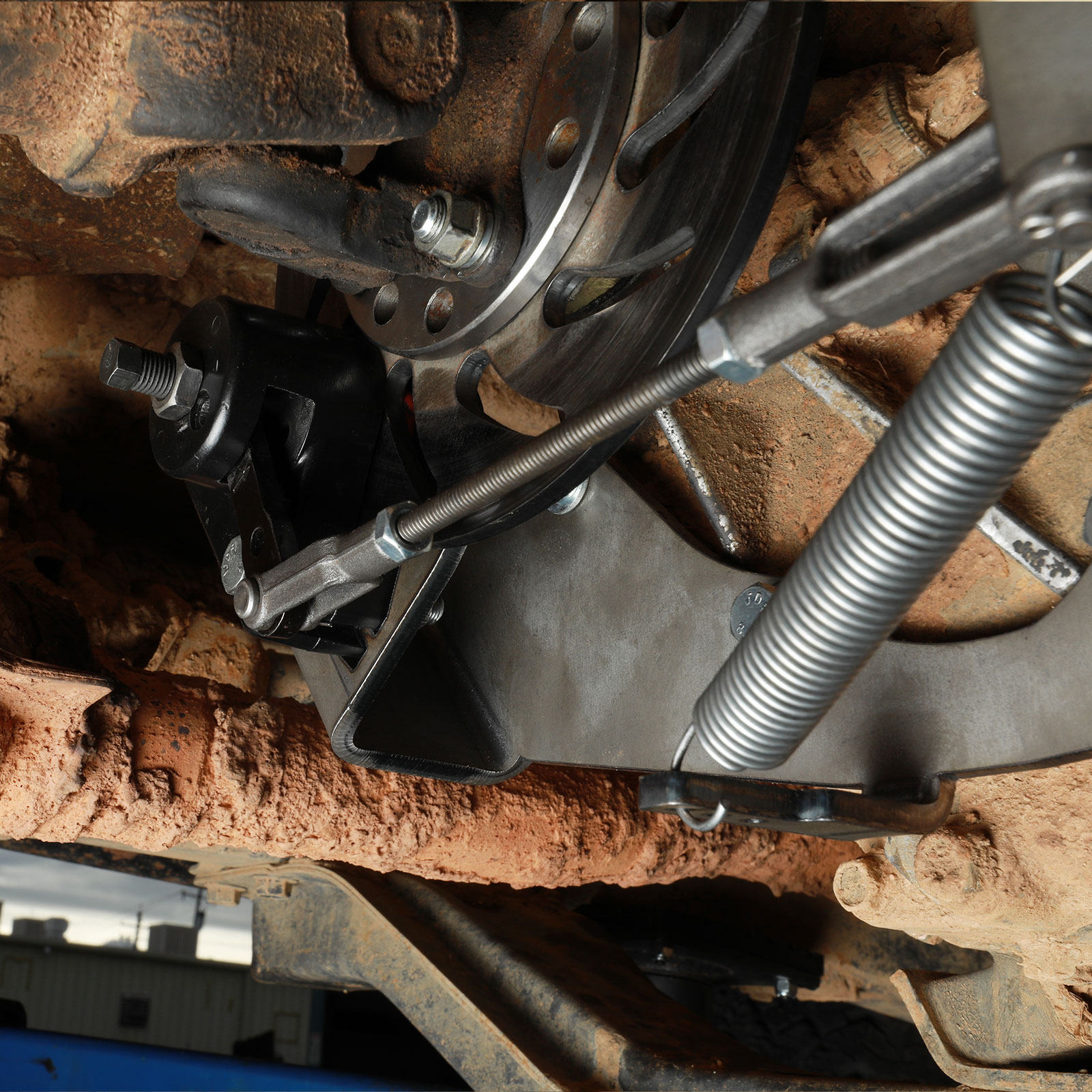 The kit hooks up directly to the stock parking brake cable. This kit provides dramatically increased braking over the stock parking brake with fewer parts to maintain and no cables hanging low to be snagged by rocks!