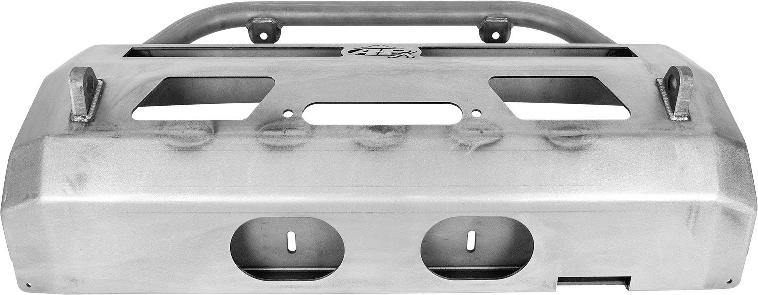 This bumper provides an increased approach angle in the front and paired with our All-Pro skid plates will provide increased protection for your undercarriage. The body of this steel bumper is made from a CNC laser cut, brake-formed, 3/16 inch steel faceplate and the 1/4 inch steel winch plate provides a solid mounting structure to your frame.