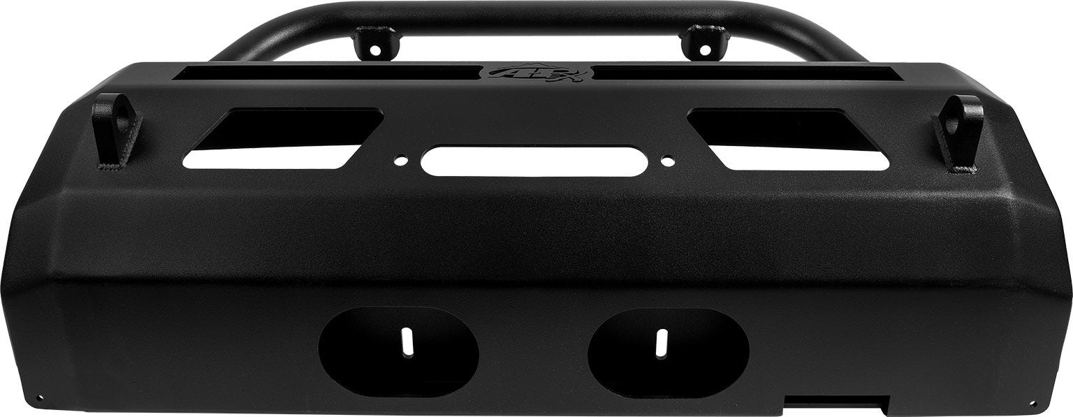 This bumper provides an increased approach angle in the front and paired with our All-Pro skid plates will provide increased protection for your undercarriage. The body of this steel bumper is made from a CNC laser cut, brake-formed, 3/16 inch steel faceplate and the 1/4 inch steel winch plate provides a solid mounting structure to your frame.