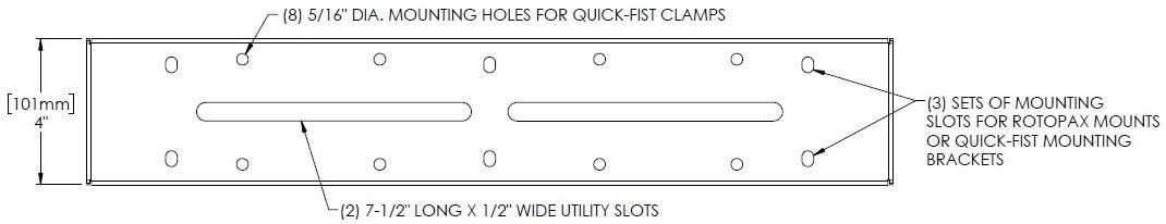 Individual Accessory Bar for the 2005-Current Tacoma APEX Modular Pack Rack. Great for mounting Rotopax cans, Jerry cans, Hi-Lift jacks, Quick-Fist clamps, shovels, axes, or almost anything else you can imagine.