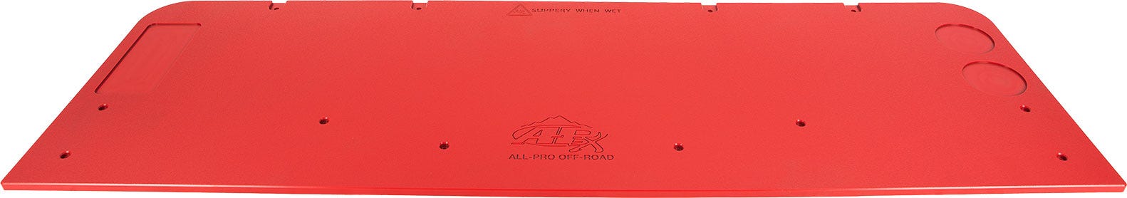 The All-Pro Off-Road overland tailgate table turns your opened tailgate into a multi-functional platform for all of your overlanding, camping, fishing, and hunting needs. The durable food-grade polyethylene cover can be used as a cutting board while supporting your favorite camp stove. A slot on the left side and cup-holders on the right side prevent items from rolling away.