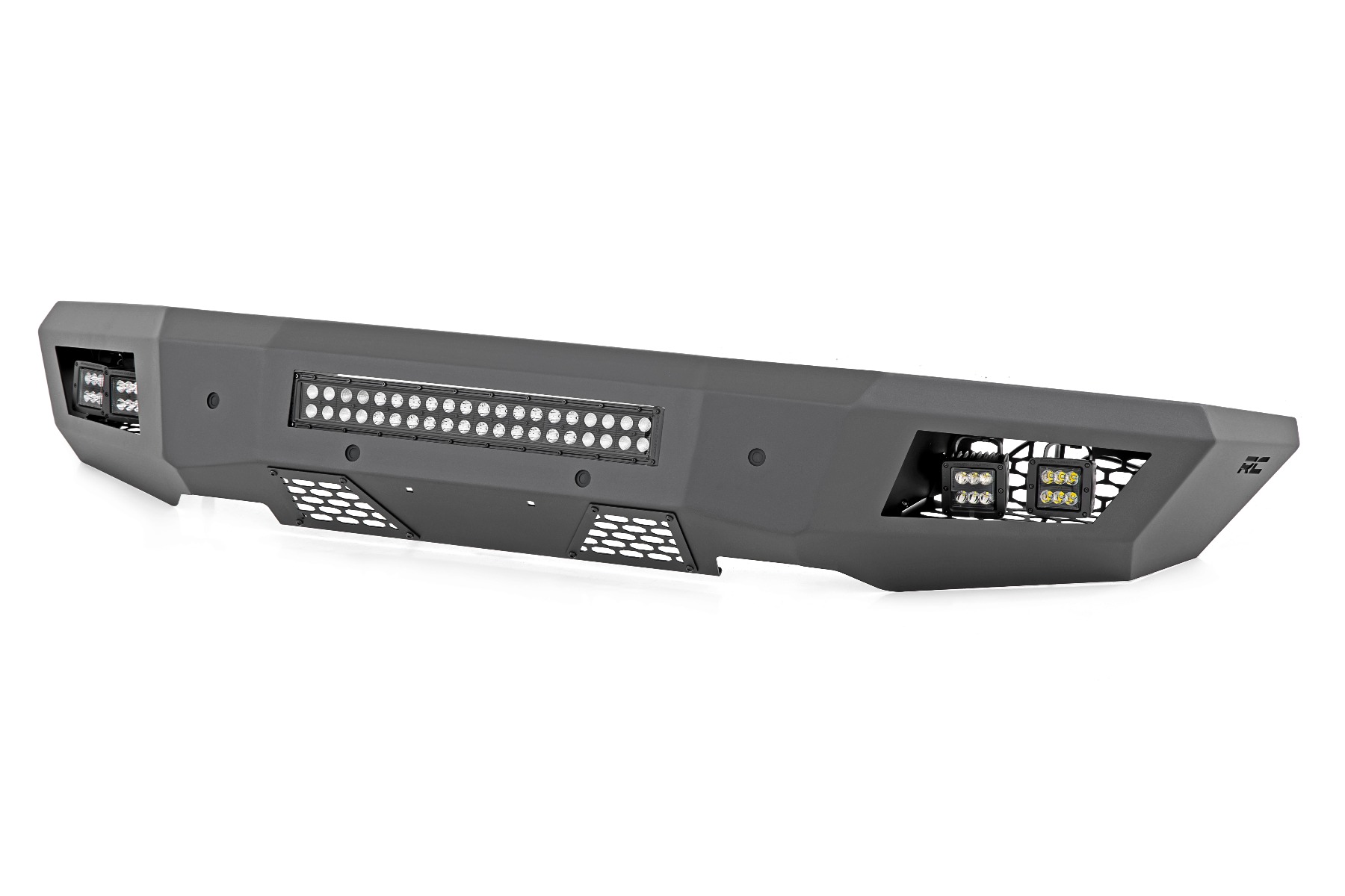 Rough Country's Front LED Bumper is made of a durable, all-steel construction that's ready to handle whatever you dish out. Each bumper features four Rough Country Black-Series 2 inch LED Cubes and a 20 inch LED Light Bar that offer over 15,000 lumens of combined lighting power.