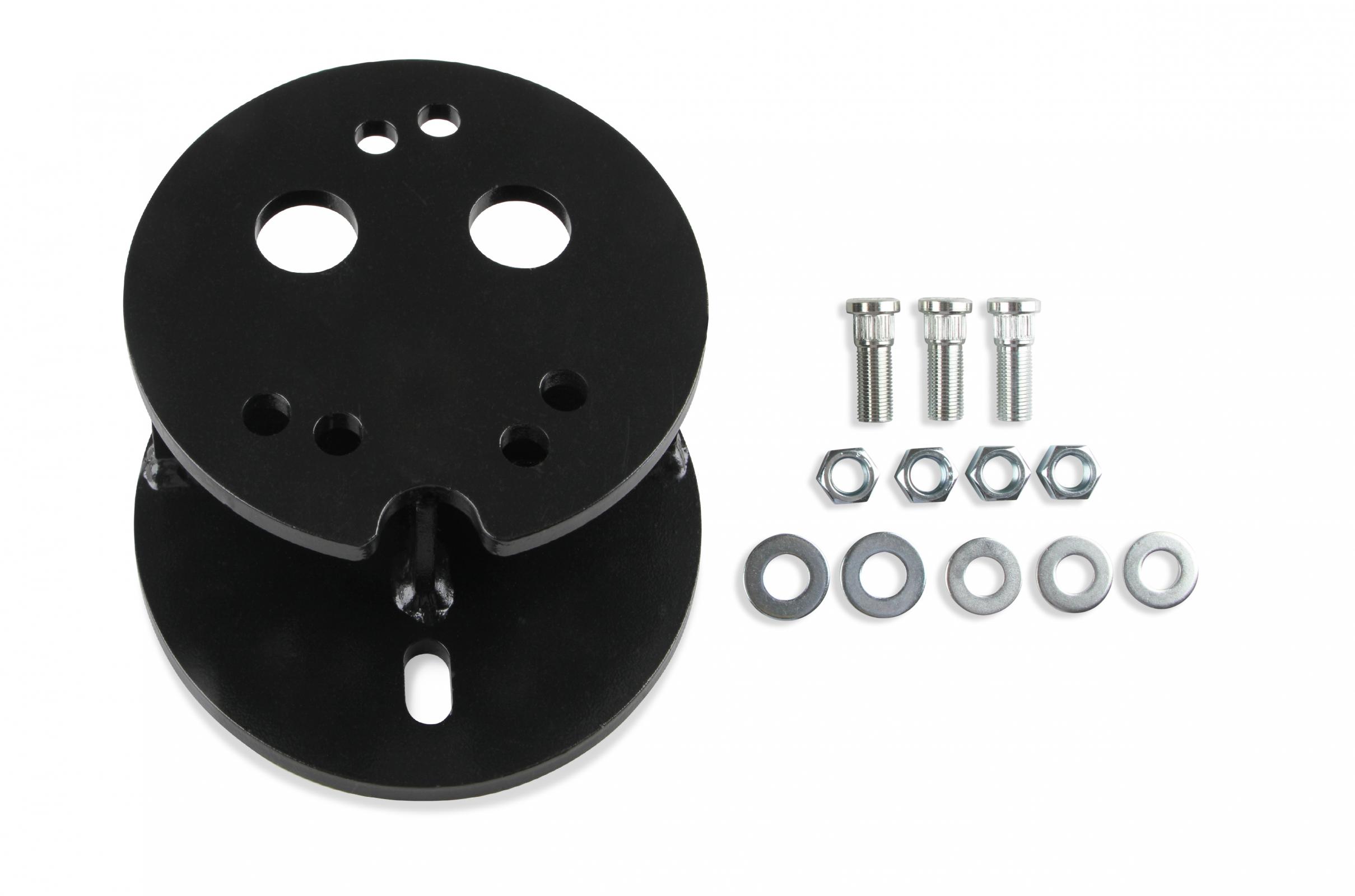 The spacer is made from steel and features a black finish and includes the mounting hardware.