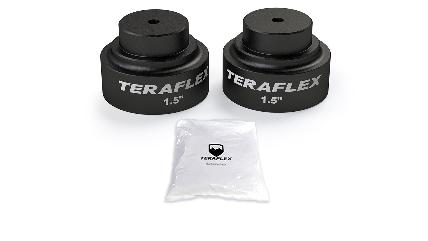 The TeraFlex JT: 1.5 Inch Rear Upper Bump Stop Strike Pad Extension Kit extends the reach of the factory bump stops on lifted JT Gladiator models to soak up energy during hard compression and suspension movement.