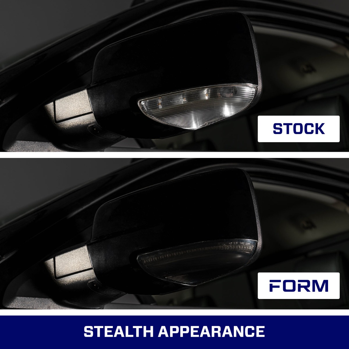 Upgraded Styling. These Form Lighting mirror lights illuminate brighter than the factory units with full-strips of LED chips. They also give you a stealth appearance with smoked lenses. With these premium OE-grade replacements you'll stand out from the crowd with an extremely modern look.