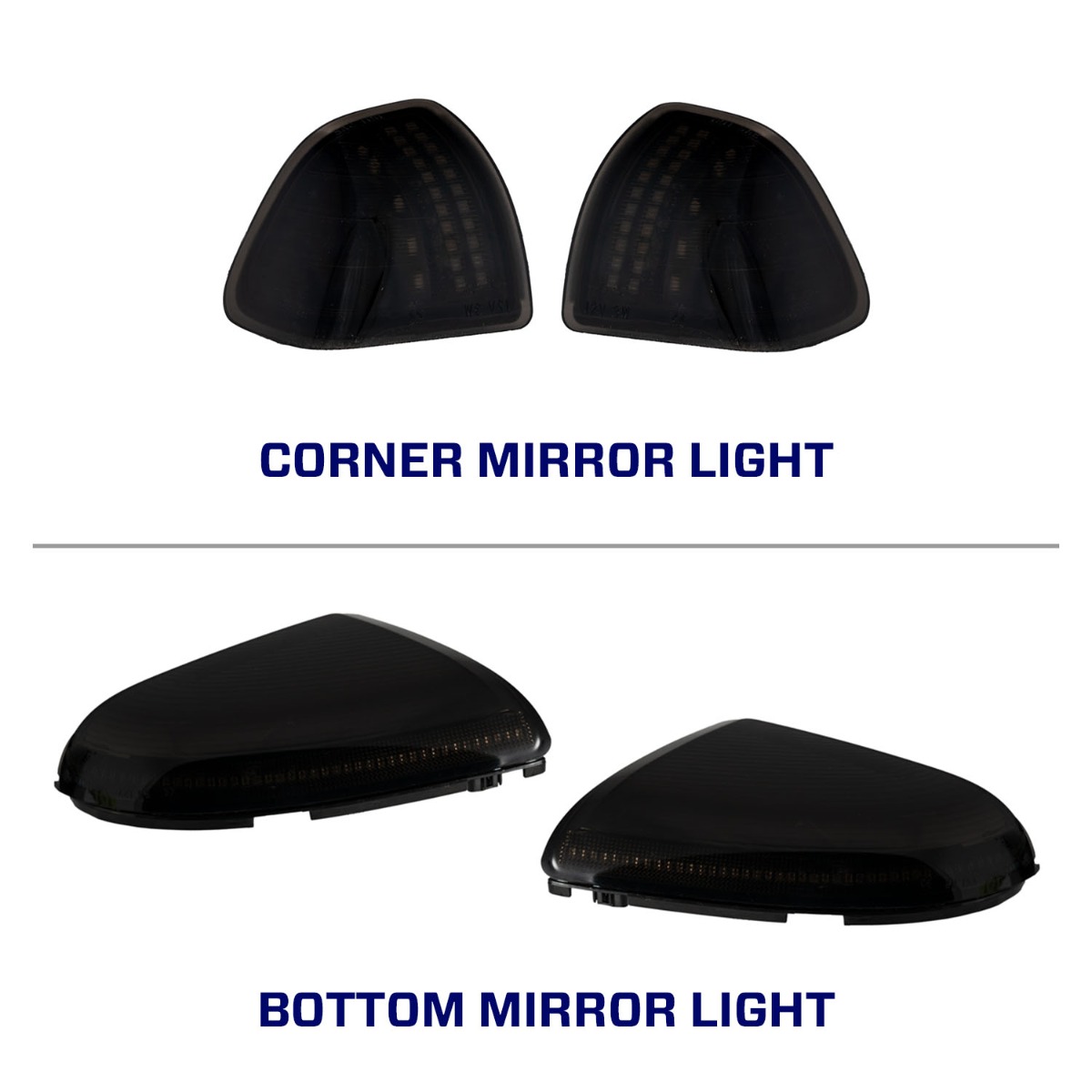 Sequential Turn Signal. These mirror lights also add a sequential turn signal. Every time the turn signal is activated the amber LEDs activate in a sweeping pattern for a premium appearance and increase visibility to other drivers on the road.