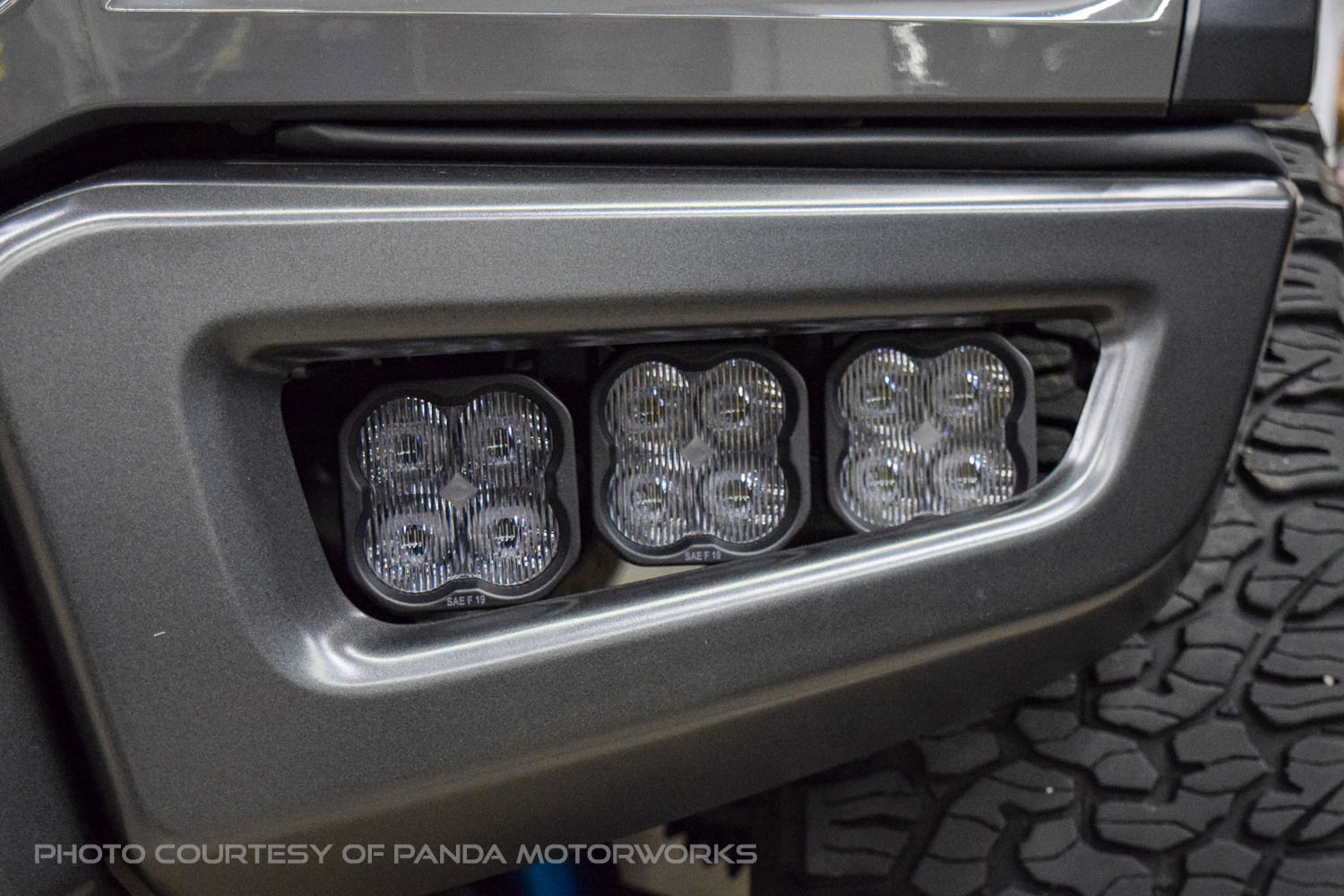 Perfect Fitment. The LED Fog Light Bar Bracket Kit for the 2017 and up Ford Raptor from Diode Dynamics allows you to mount auxiliary lighting in the factory bumper openings. These application-specific brackets were CAD-designed to install using factory mounting points. No cutting or drilling required!