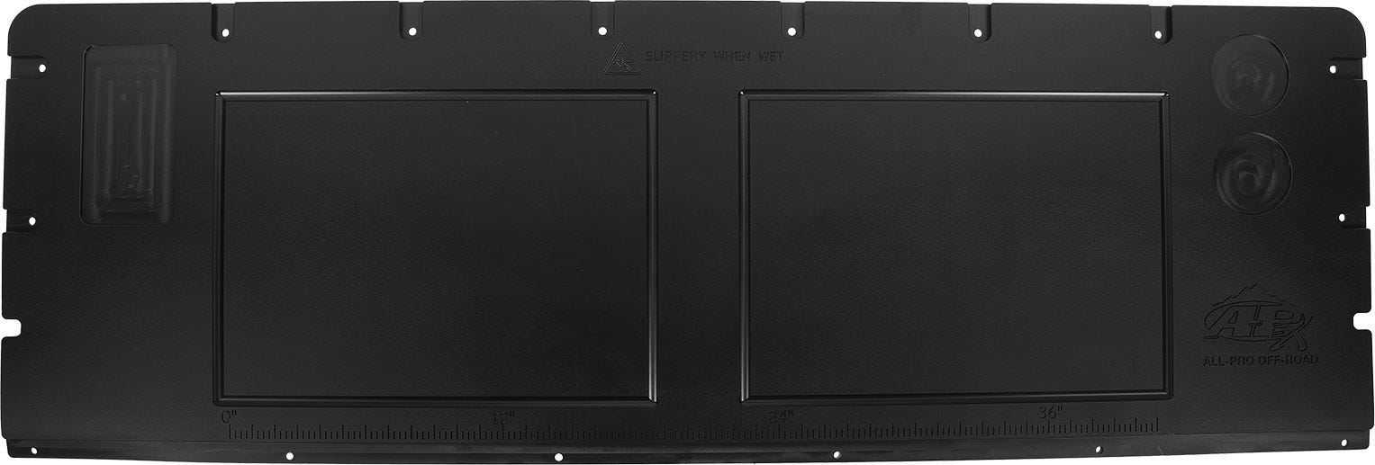 The All-Pro Off-Road overland tailgate table turns your opened tailgate into a multi-functional platform for all of your overlanding, camping, fishing, and hunting needs. The durable food-grade polyethylene cover can be used as a cutting board while supporting your favorite camp stove. A slot on the left side and cup-holders on the right side prevent items from rolling away.