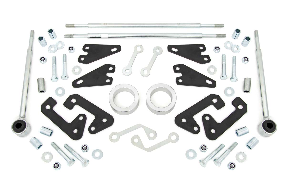 This kit also includes a set of extended sway links and bracket spacer sleeves to keep everything at the optimum angle after lifting. Includes a Lifetime Replacement Guarantee!