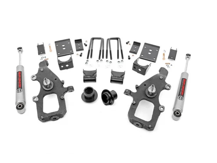 How low will you go? Give your F-150 a total transformation with Rough Country's 3in/5in lowering Kit for 04-08 Ford F-150 2WD Trucks! This all-inclusive lowering kit comes with everything you need for a sleek, street-cruising monster that's sure to turn heads.
