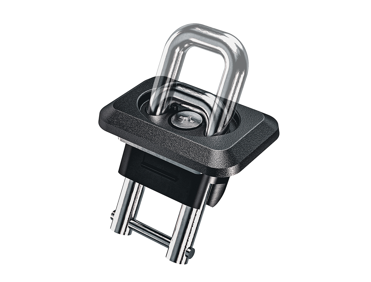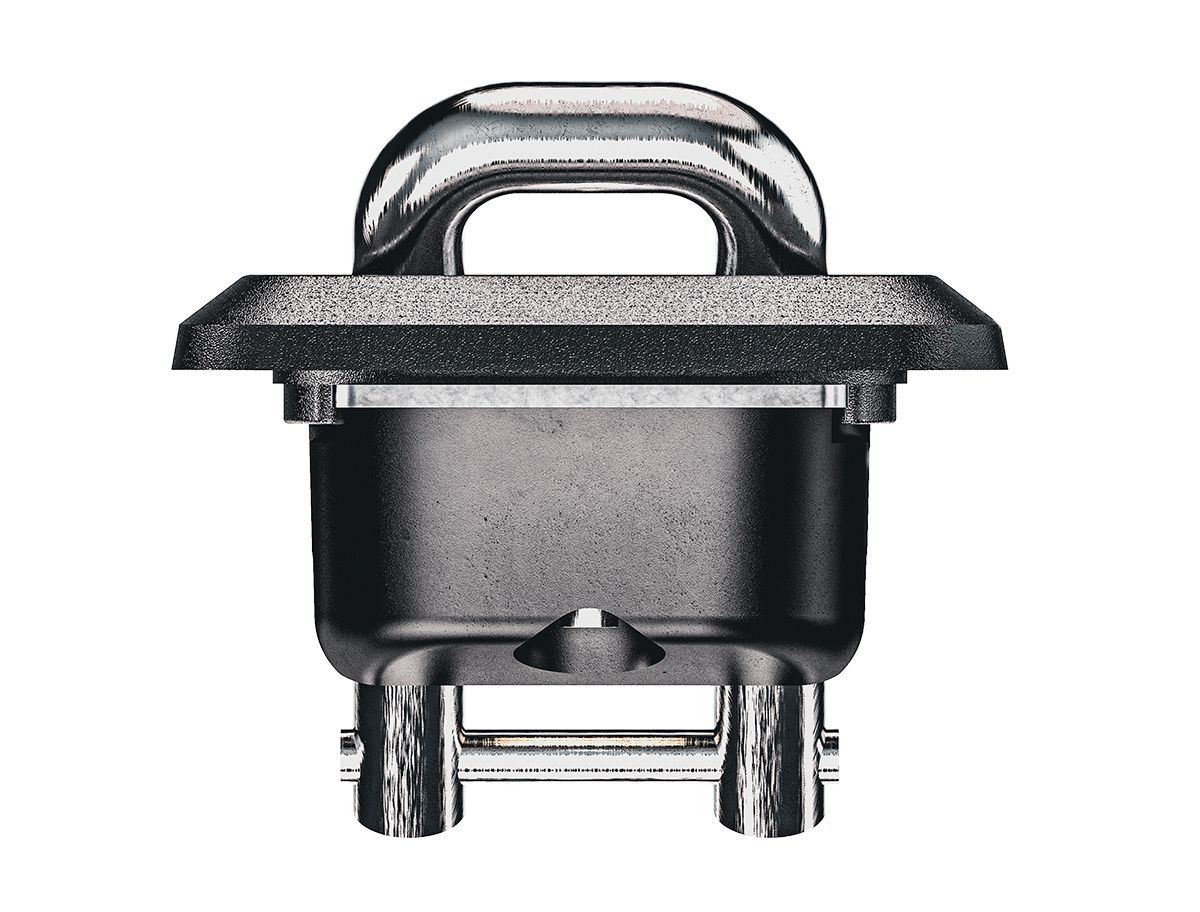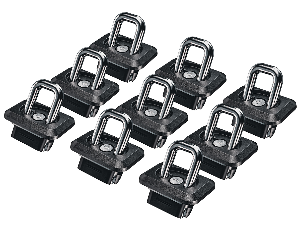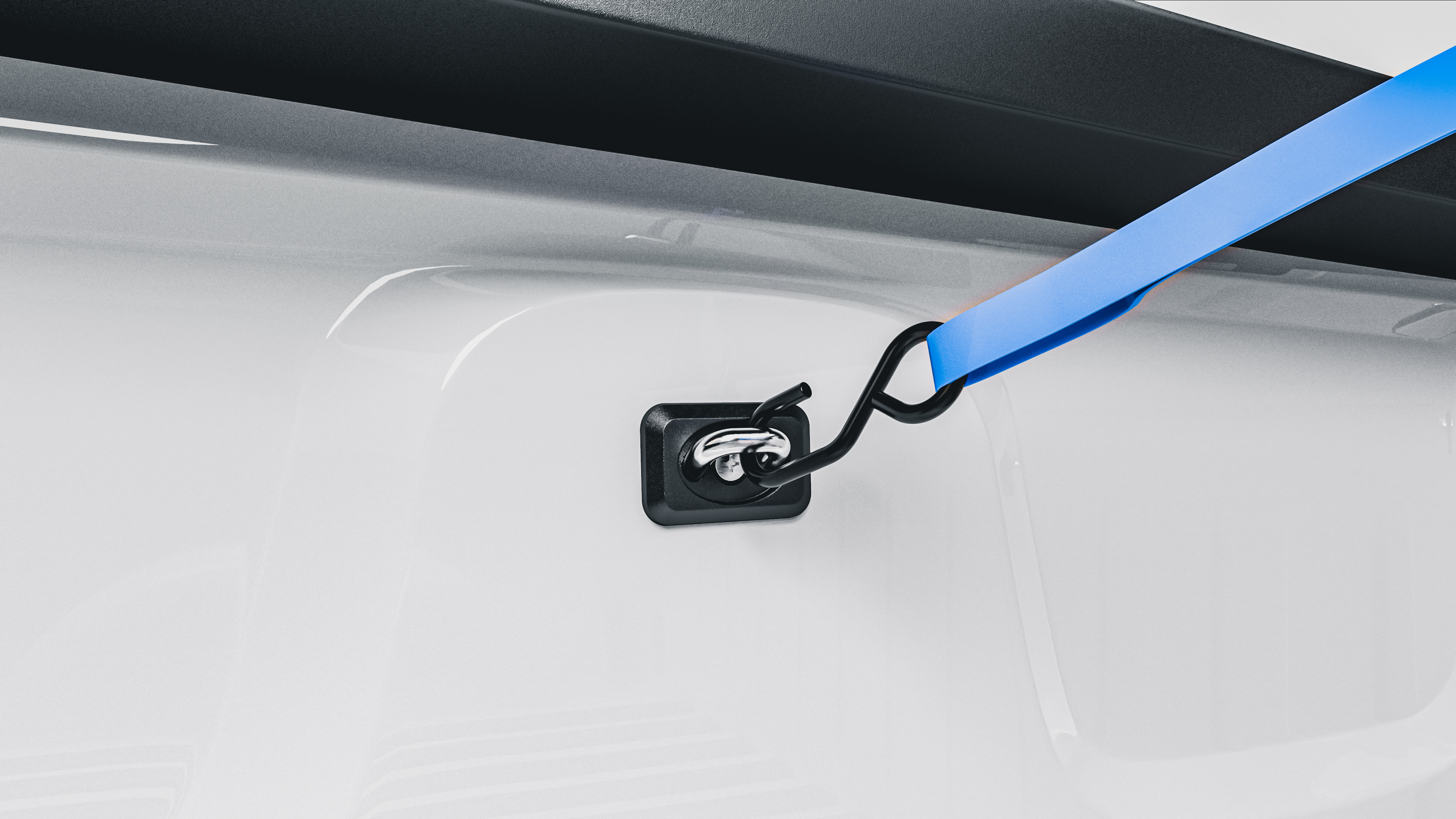 The retractable anchor ring lifts up and out at a 35 degree angle to match the angle used when securing loads with ratchets or rope, then hit it down flush when it's not in use.