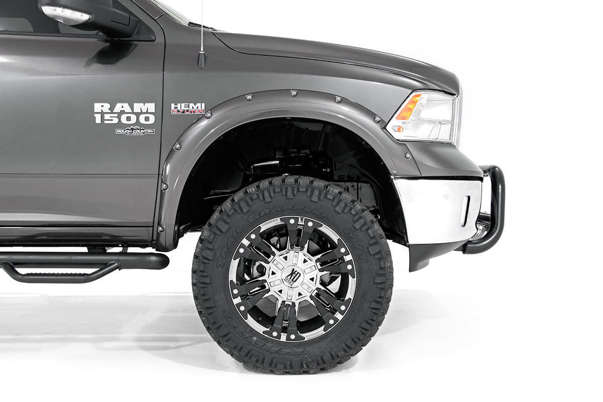 Add aggressive good looks quickly and easily with Rough Country's Fender Flares. Nothing compliments a new lift, wheels, and tires like a set of stylish, mean-looking fender flares. Rough Country's Fender Flares are designed with a simulated riveted look.