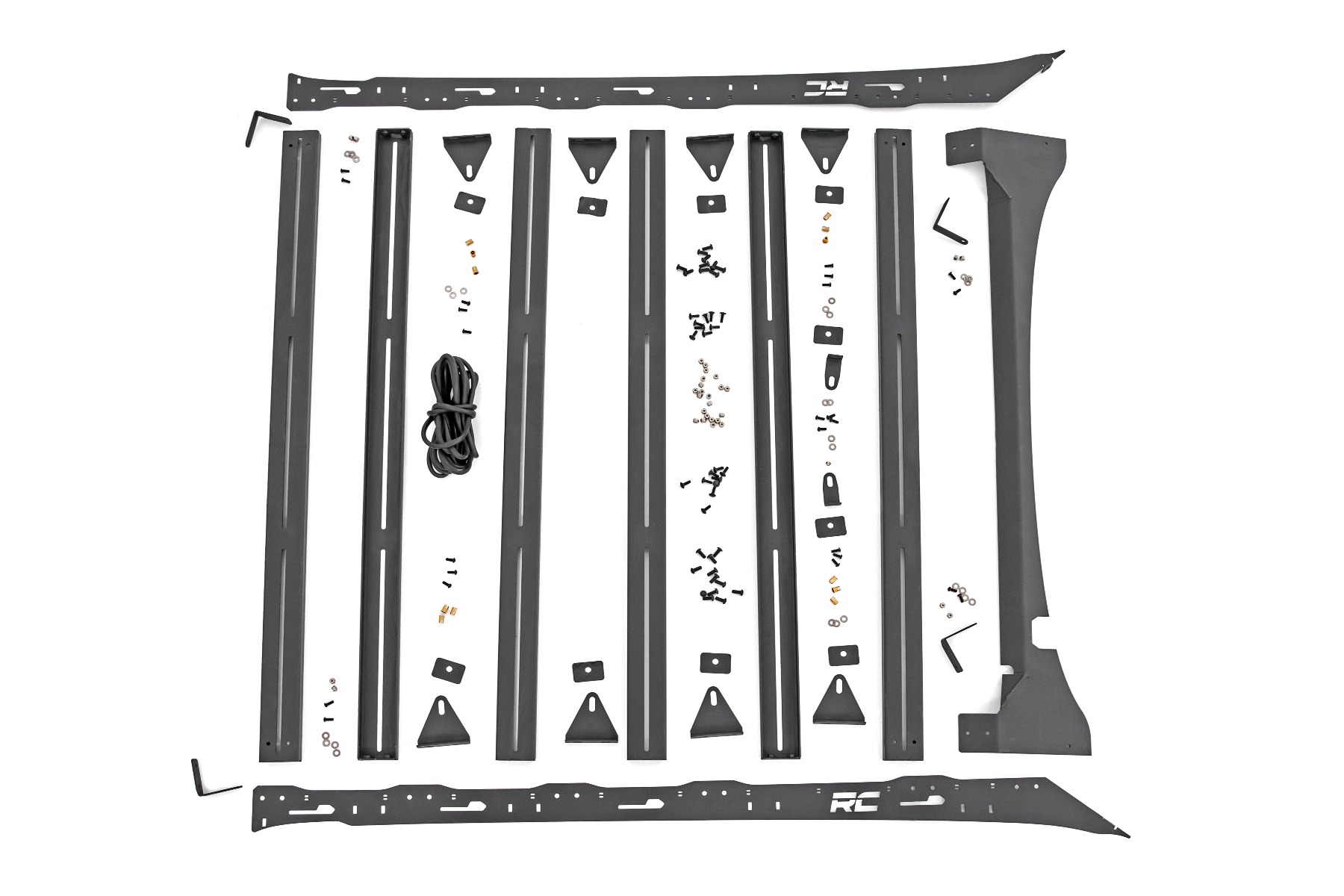 Rough Country's Ford Roof Rack Kit features 4 durable steel slats to help you firmly secure your gear and is available with optional front and rear LED lights for off-road illumination when you need it most. Whether you're heading out on an overland adventure or you just find yourself needing extra space to haul your gear, this convenient Ford cargo rack is a lifesaver!