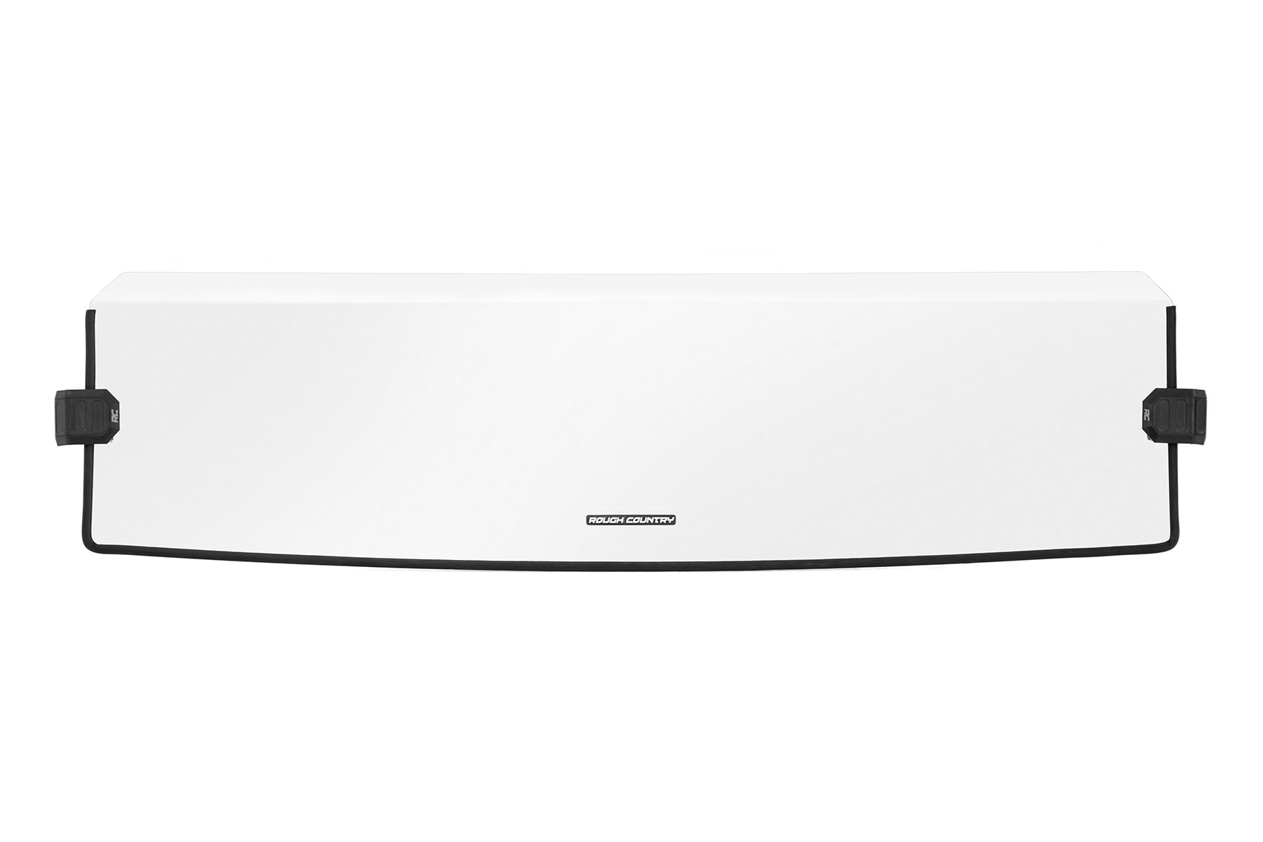 High-Quality Polycarbonate Construction. Rough Country UTV windshields are constructed from thick polycarbonate material that is precision cut for a perfect fit. The polycarbonate material provides an ideal combination of clarity, flexibility, durability that outperforms glass, acrylic, and other windshield materials.