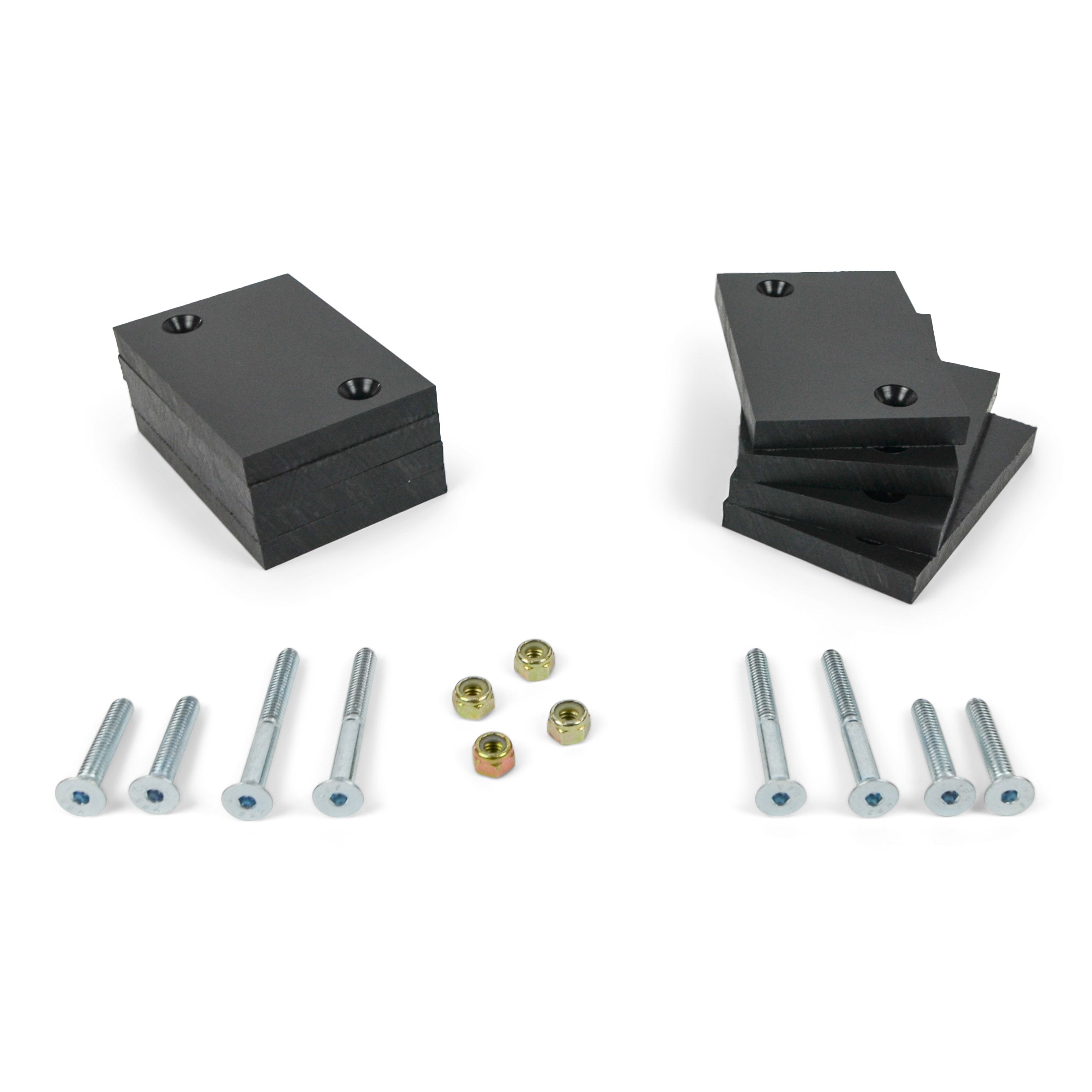 The Jeep Gladiator JT rear bump stop extension kit allows you to adjust your rear up travel in conjunction with our 1" or 3" bump stops. This kit comes with eight (8) total 1/2 spacers, eight (8) bolts, and four (4) nuts which allows you to add 1/2", 1", 1 1/2" or up to 2" of additional bump stop.