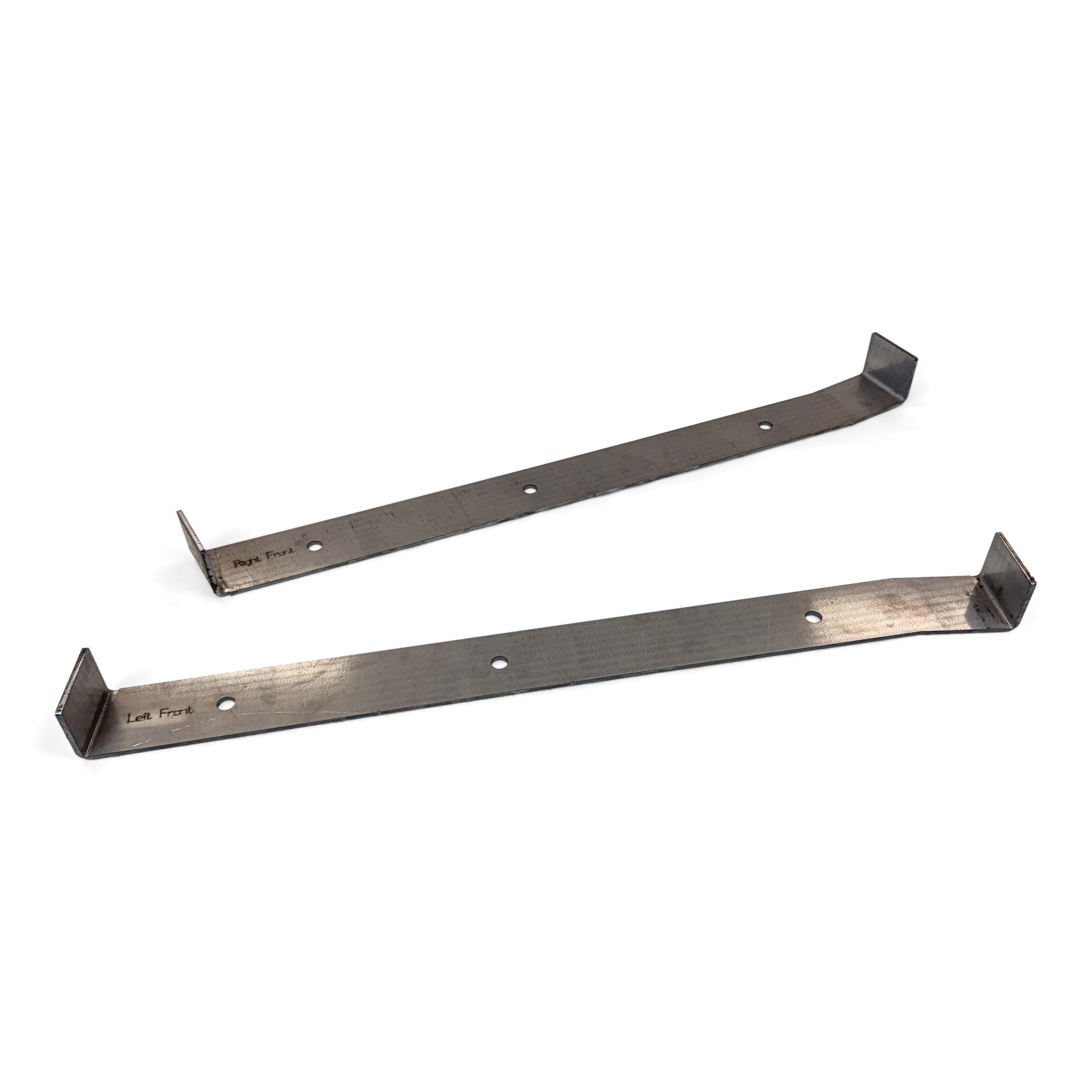 A pair of drive side and passenger side templates for a 04-06 Jeep Wrangler Unlimited LJ. These will help properly locate your LJ long arm frame brackects. Just bolt in the template, C clamp the new frame brackets against the edge of this template, tackle weld, double check and then fully weld your frame brackets to your frame.