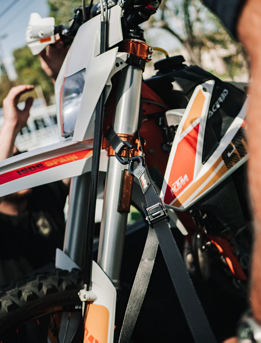 This kit includes our Cam-Lock Tie-Downs that are quick and easy to use with your bike, or can be used for just general use to secure cargo.