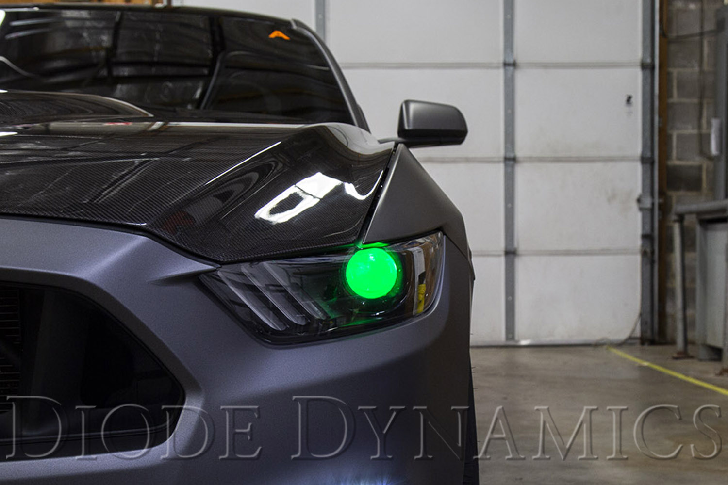 Full RGBW. Full multicolor, with no sacrifice. Convert the projector inside your Mustang's headlights to illuminate in any color for a unique, custom look. This kit adds an LED to shine light onto the projector lens. Unlike other RGB Demon Eyes on the market that produce a mixed white color, our Pro Series Demon Eyes are RGBW, with independent White LEDs. After you have fun with colors, just select True White for a crisp, clean white output for everyday use.
