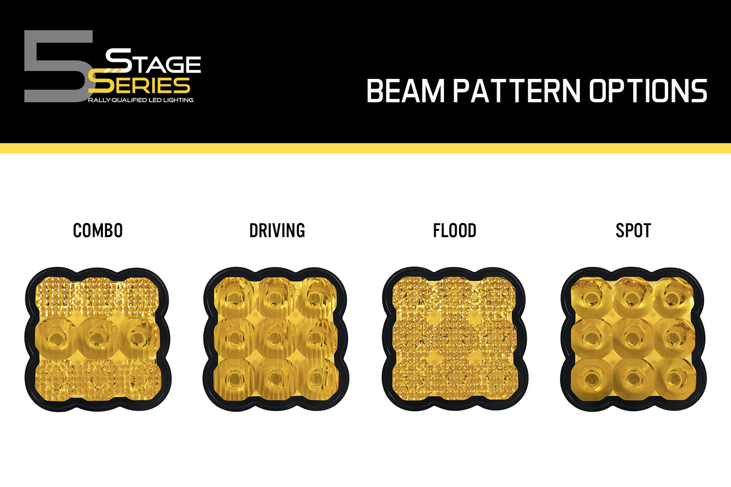 Colors. SS5 LED pod lenses are available in clear material producing white light or a selective yellow filter. You can change the color of your lights by swapping out the lens but please note that changing colors may not be perfect with these lenses because different LEDs are used depending on the color of light you originally purchased.