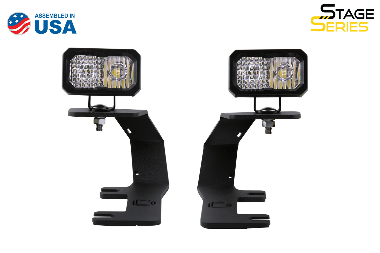 Perfect fitment. The Stage Series 2 Inch LED Ditch Light Kit for the 2014-2018 Silverado 1500/Sierra 1500 and 2019 Silverado 1500 LD/Sierra 1500 Limited allows you to easily mount two Stage Series 2 Inch Pods above the hood. These application-specific brackets were CAD-designed to install using factory mounting points. No cutting or drilling required! This kit features a low profile design while minimizing glare and will not interfere with raising or lowering the hood.