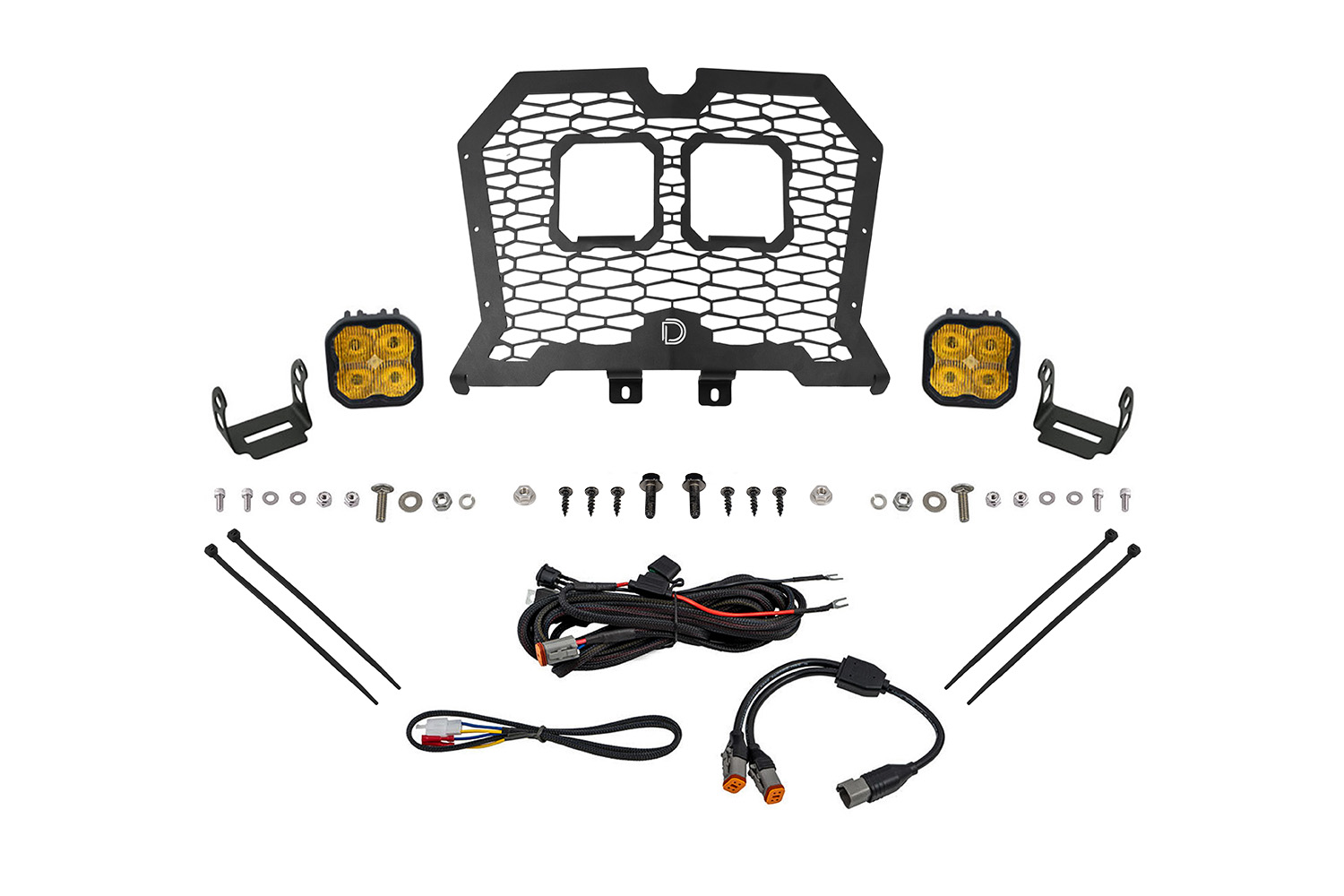 Designed for Performance. The Stage Series LED Grille Kit compatible with the Polaris XP 2019-2023 allows you to replace the factory plastic grille with a durable stainless steel grille using factory mounting points. No cutting or drilling required! This stainless steel grille from Diode Dynamics was specifically designed for the RZR trail with a honeycomb pattern to match the lower grille, and two openings that allow you to mount two SS3 LED pods with a stealth, OEM-like appearance. If you ride in dusty conditions, this is the perfect kit for you. The included SS3 LED pods will cut through dust and fog with ease, giving you more visibility in undesirable conditions.