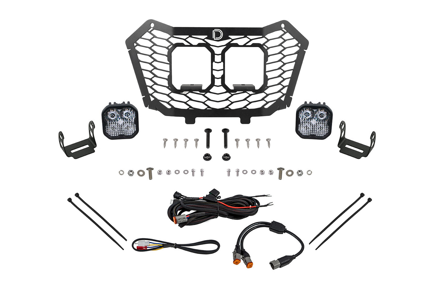 Designed for Performance. The Stage Series LED Grille Kit compatible with the Honda Talon 2022-2024 allows you to replace the factory plastic grille with a durable stainless steel grille using factory mounting points. No cutting or drilling required! This stainless steel grille from Diode Dynamics was specifically designed for the Talon with a honeycomb pattern to match the lower grille, and two openings that allow you to mount two SS3 LED pods with a stealth, OEM-like appearance. If you ride in dusty conditions, this is the perfect kit for you. The included SS3 LED pods will cut through dust and fog with ease, giving you more visibility in undesirable conditions.