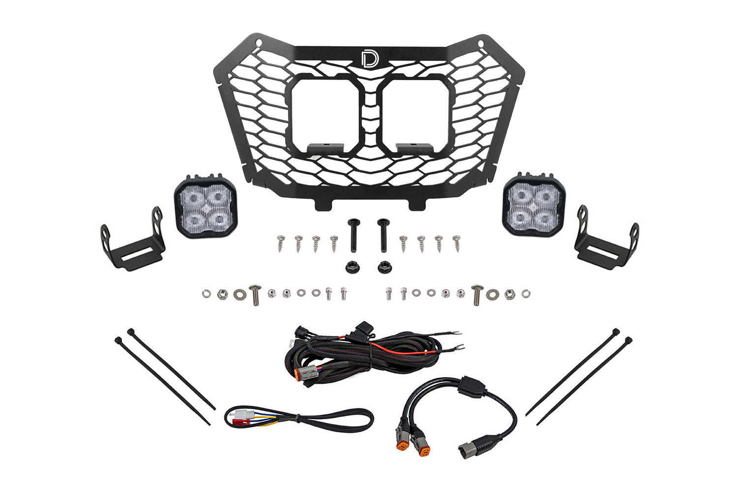 Designed for Performance. The Stage Series LED Grille Kit compatible with the Honda Talon 2022-2024 allows you to replace the factory plastic grille with a durable stainless steel grille using factory mounting points. No cutting or drilling required! This stainless steel grille from Diode Dynamics was specifically designed for the Talon with a honeycomb pattern to match the lower grille, and two openings that allow you to mount two SS3 LED pods with a stealth, OEM-like appearance. If you ride in dusty conditions, this is the perfect kit for you. The included SS3 LED pods will cut through dust and fog with ease, giving you more visibility in undesirable conditions.