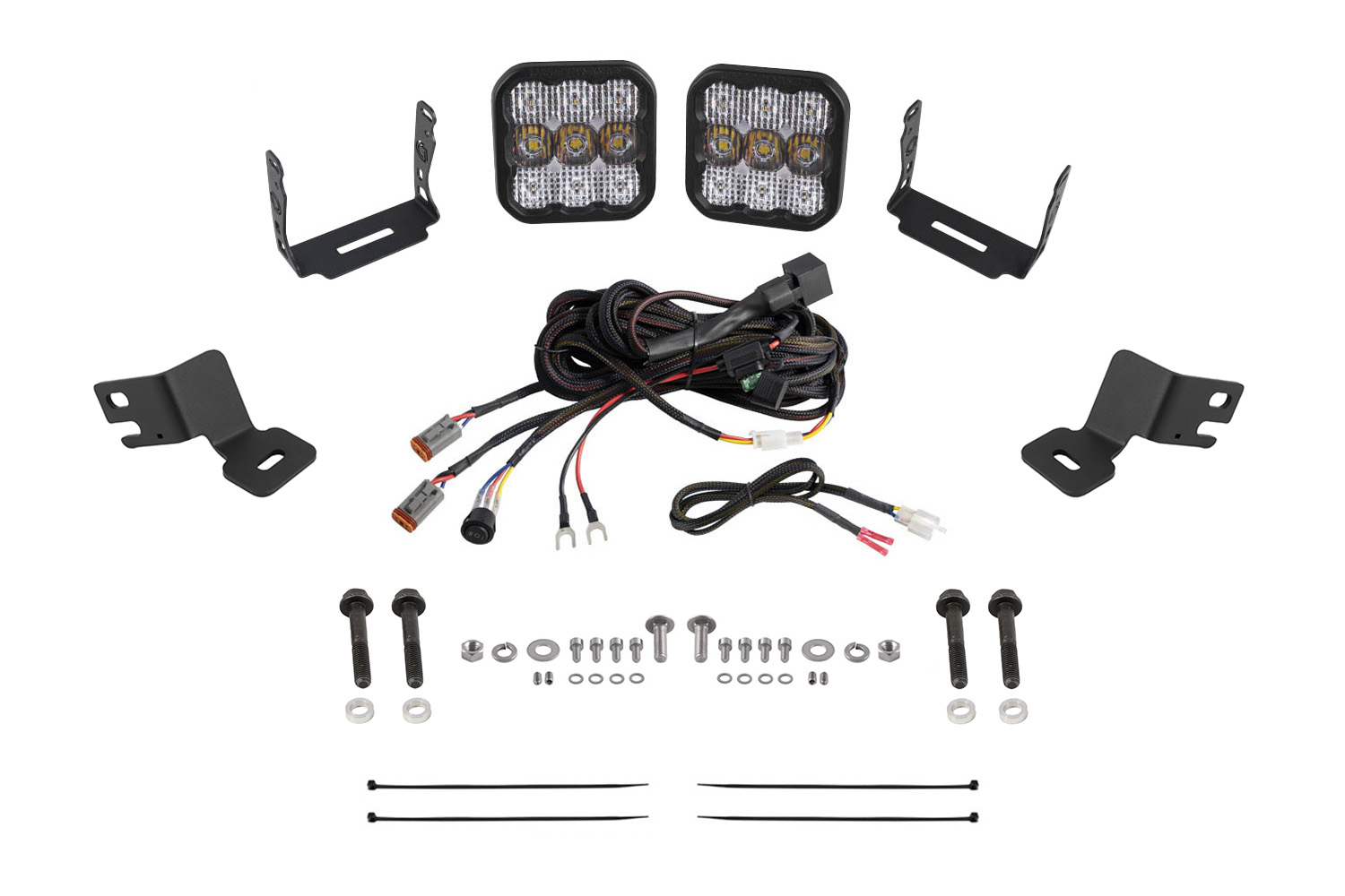 Backlight Functionality. Both the SS3 or SS5 pods included in our Stage Series A-Pillar Light Kits feature a brilliant Amber backlight. This integrated backlight gives you an additional accent light, along with the main beam. The backlight fully illuminates the TIR optic, providing a more unique and modern look than the small indicator LEDs found in other products. To power the backlight, use the included harness to tap your desired vehicle function.
