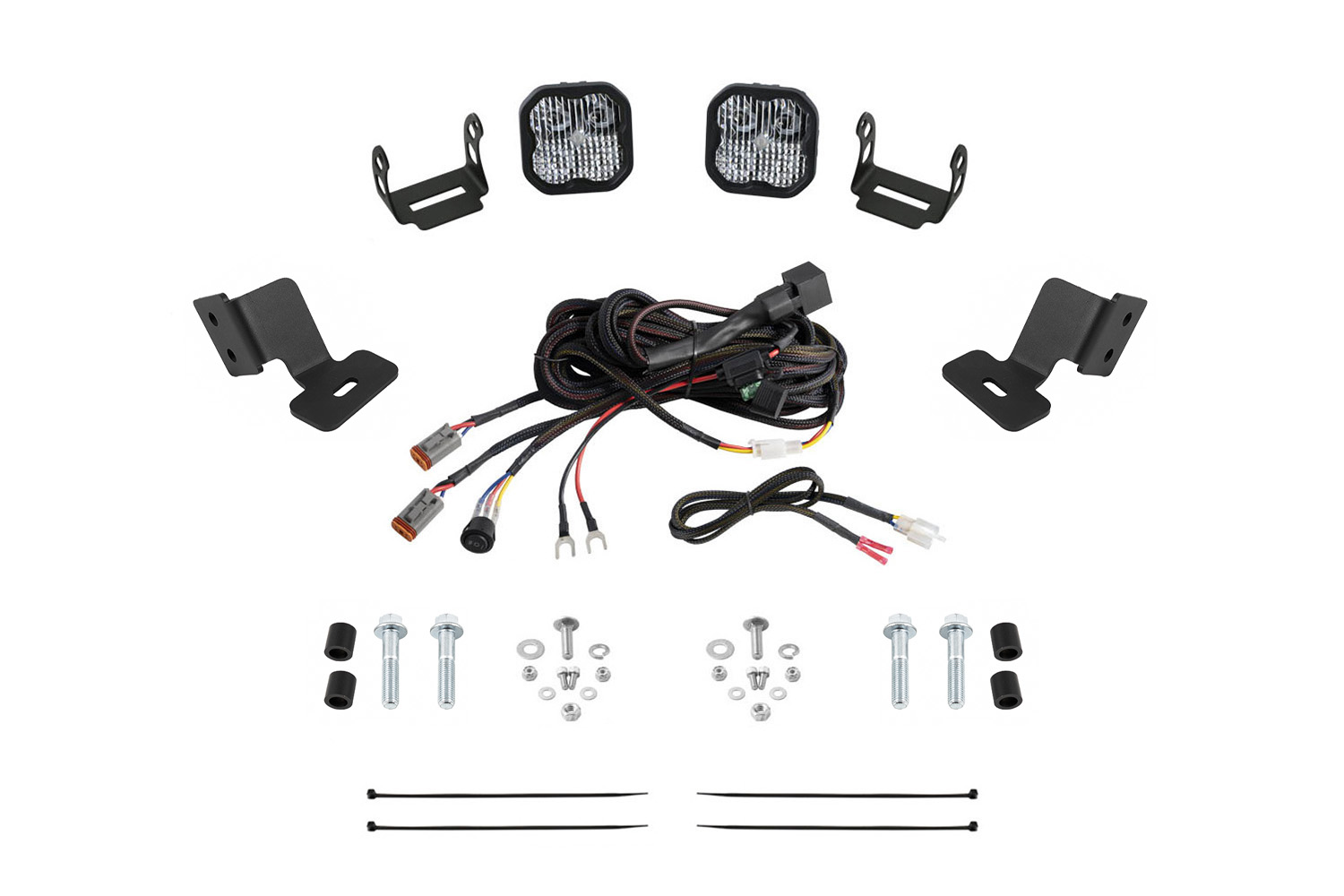 Backlight Functionality. Both the SS3 or SS5 pods included in our Stage Series A-Pillar Light Kits feature a brilliant Amber backlight. This integrated backlight gives you an additional accent light, along with the main beam. The backlight fully illuminates the TIR optic, providing a more unique and modern look than the small indicator LEDs found in other products. To power the backlight, use the included harness to tap your desired vehicle function.