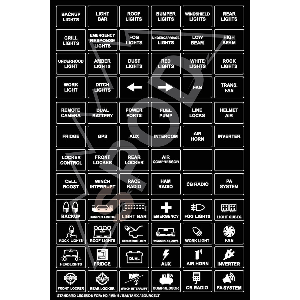 Note: These legends are the standard legends supplied with the control panels (HD and Mini6), the BantamX and SourceLT.